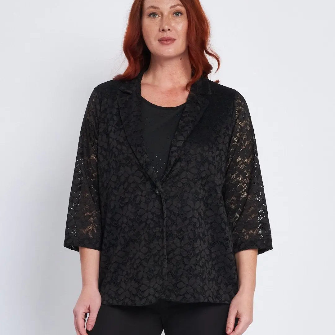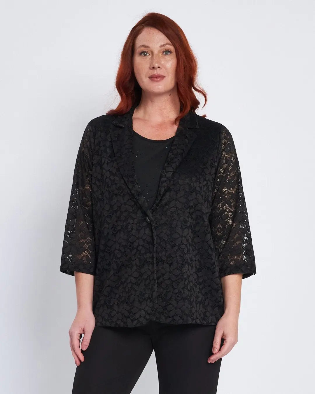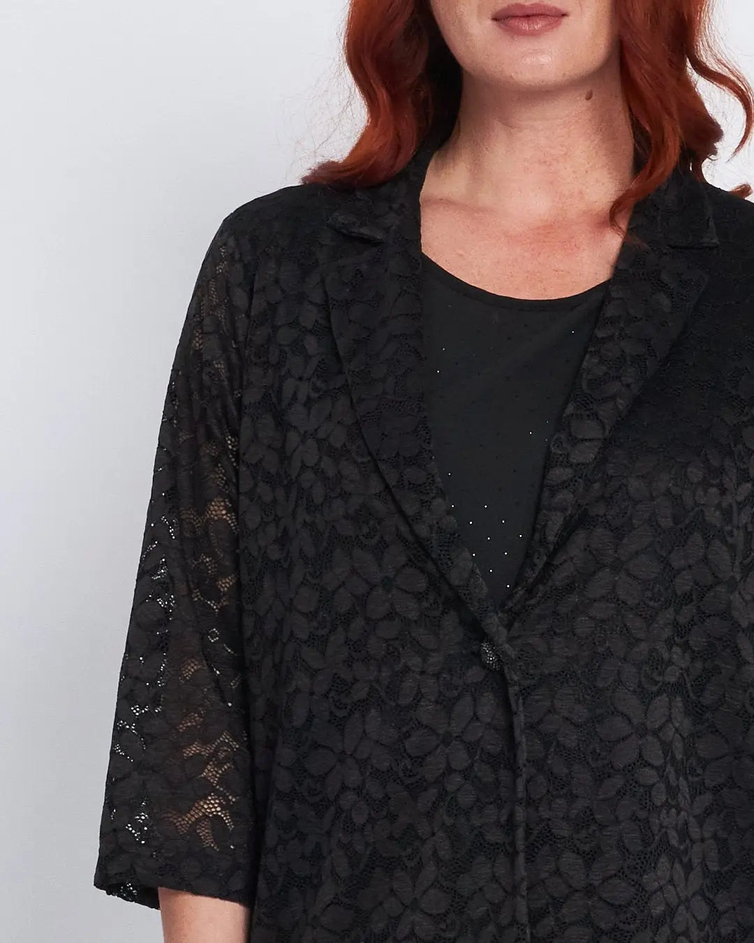 Chaqueta de encaje de botonadura sencilla NEGRA
