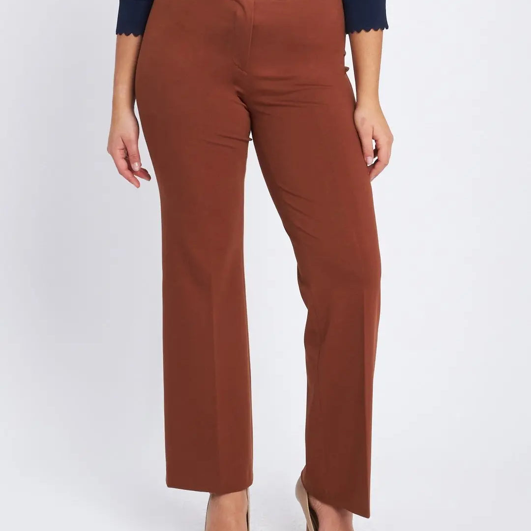 Pantalón acampanado en punto milanés en viscosa CACAO