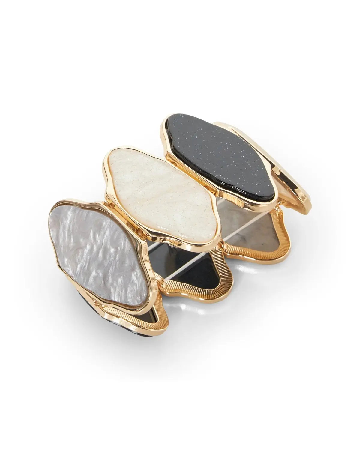 Pulsera elástica de metal y piedras asimétricas NEGRO-GRIS