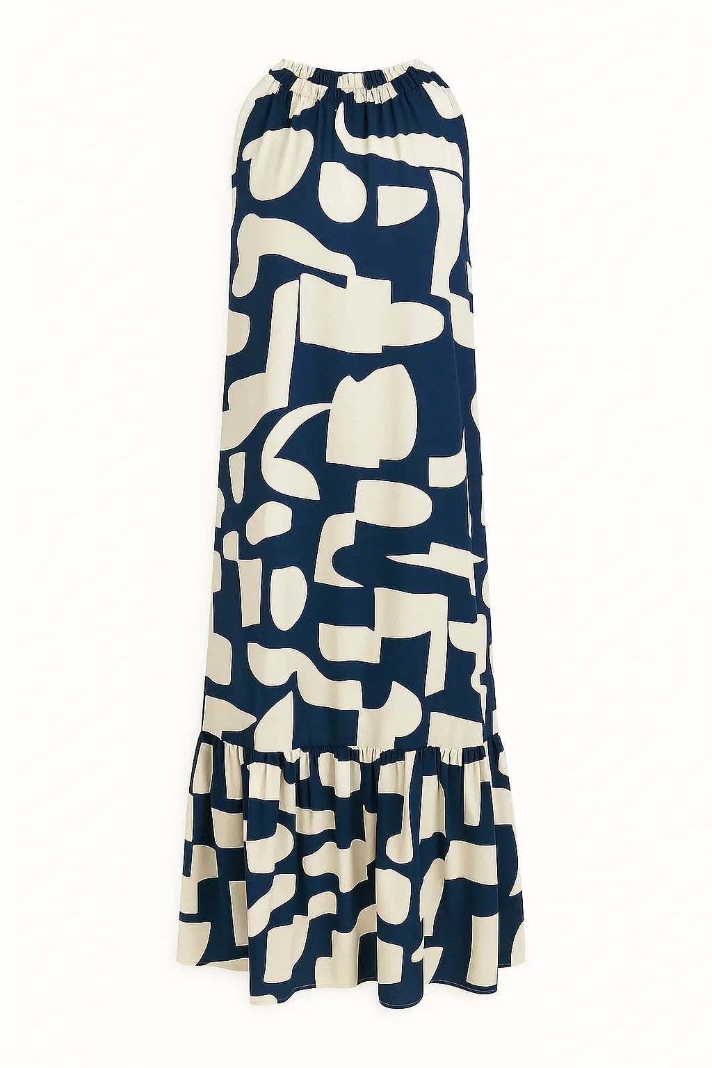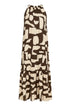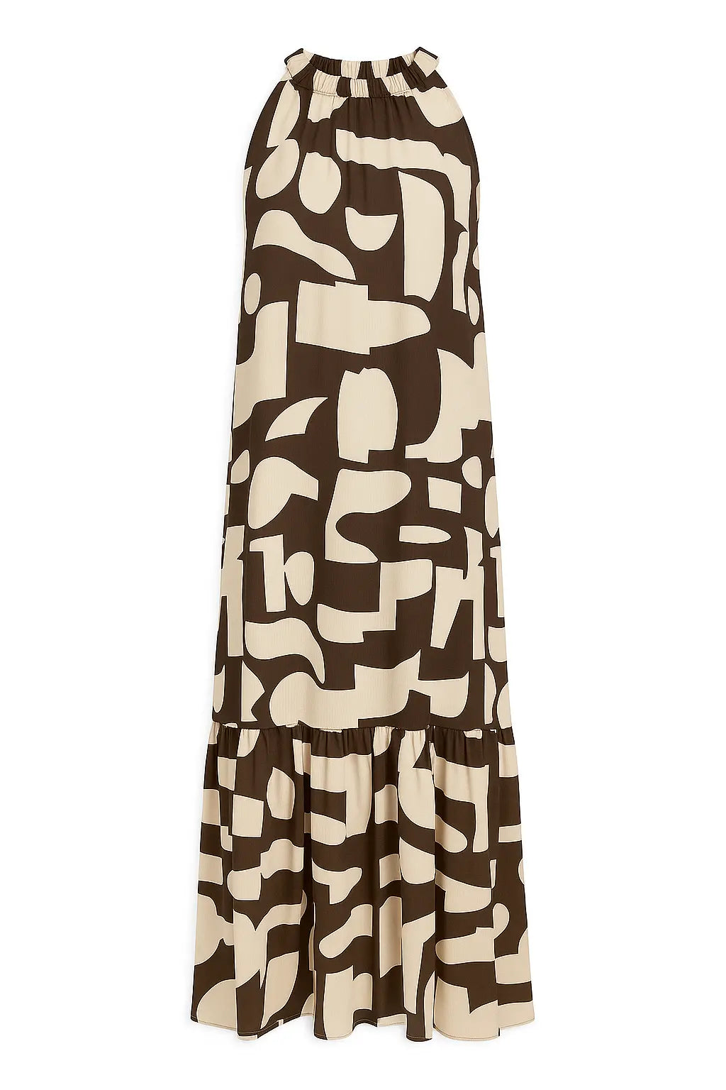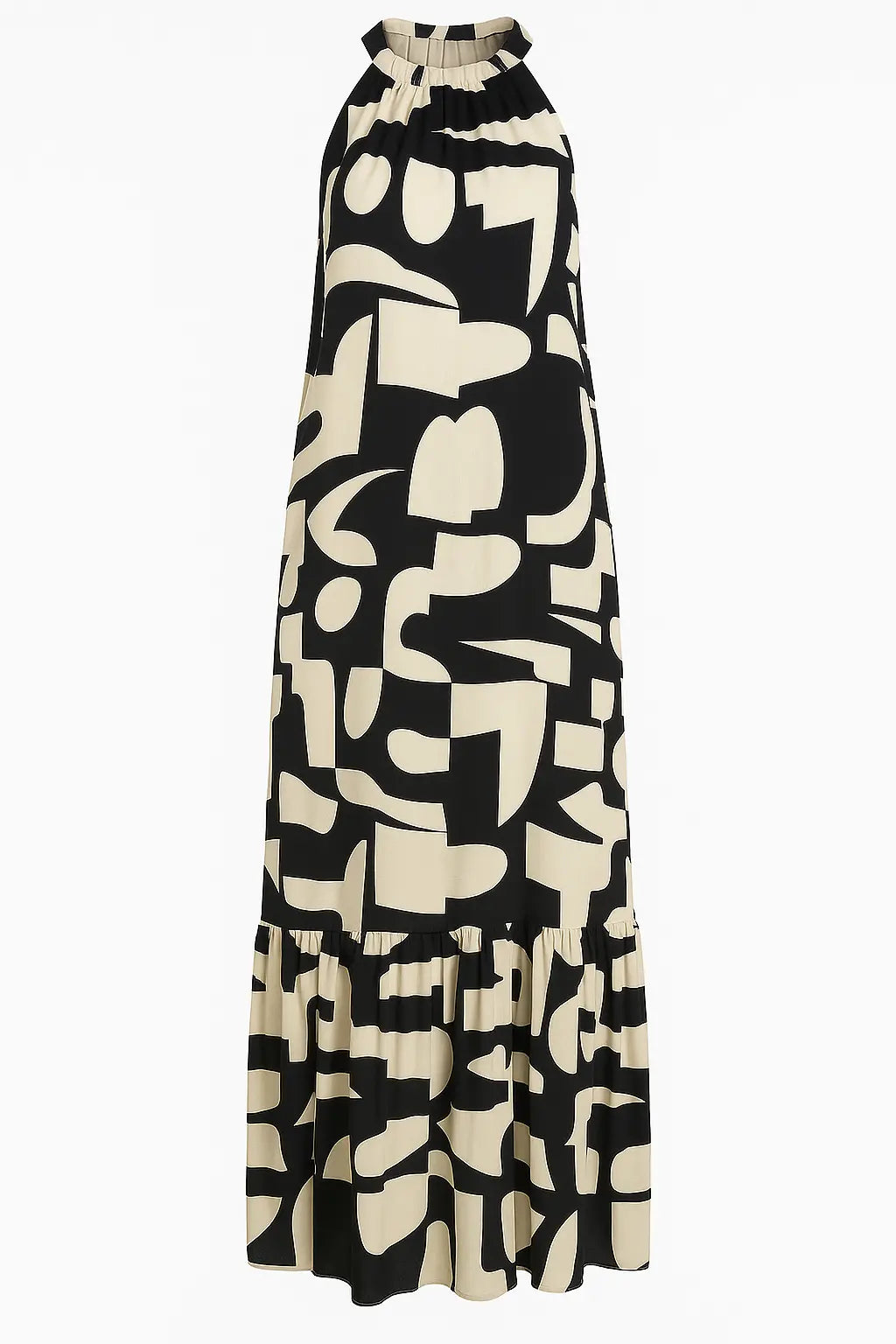 Elegante e contemporaneo, questo abito lungo è la scelta ideale per distinguersi con stile durante la stagione calda. Realizzato in un leggero tessuto stampato, si caratterizza per il suo design con scollo all’americana e giromanica a vogatore, che valorizza le spalle con femminilità. La balza sul fondo aggiunge volume e movimento, mentre la stampa grafica in verde militare dona un tocco moderno e versatile. Perfetto sia per il giorno con sandali flat che per la sera con accessori più sofisticati.