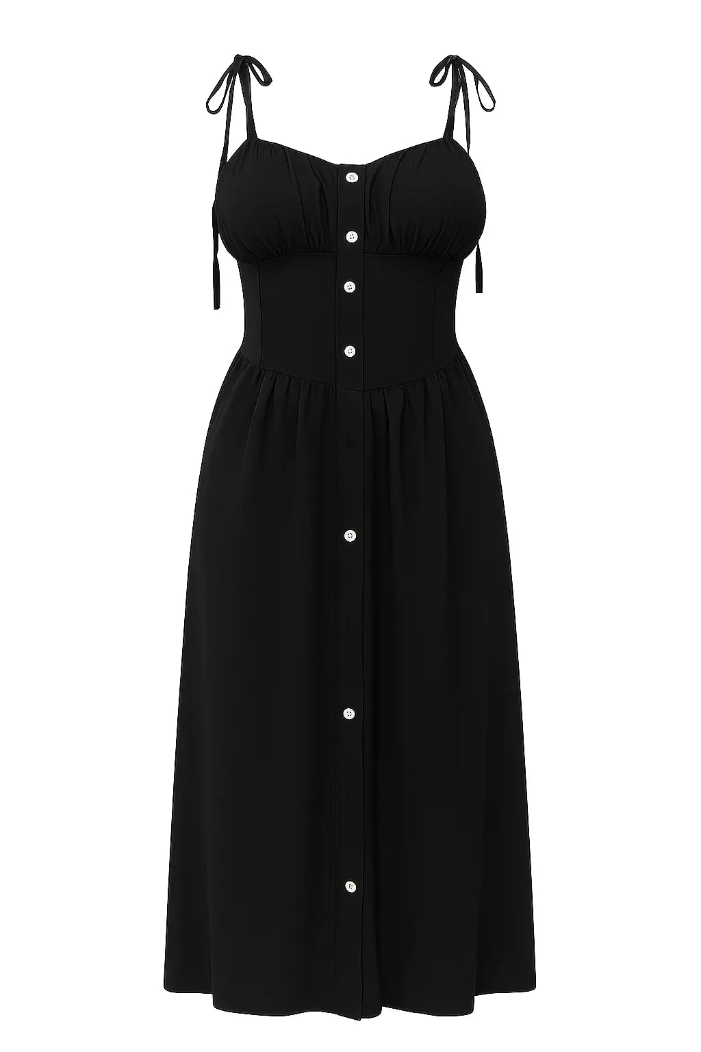 Abito con bretelline, bottoni frontali e corpino con coppette