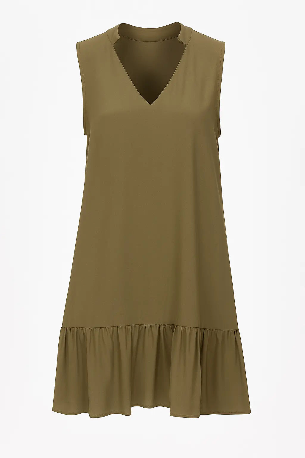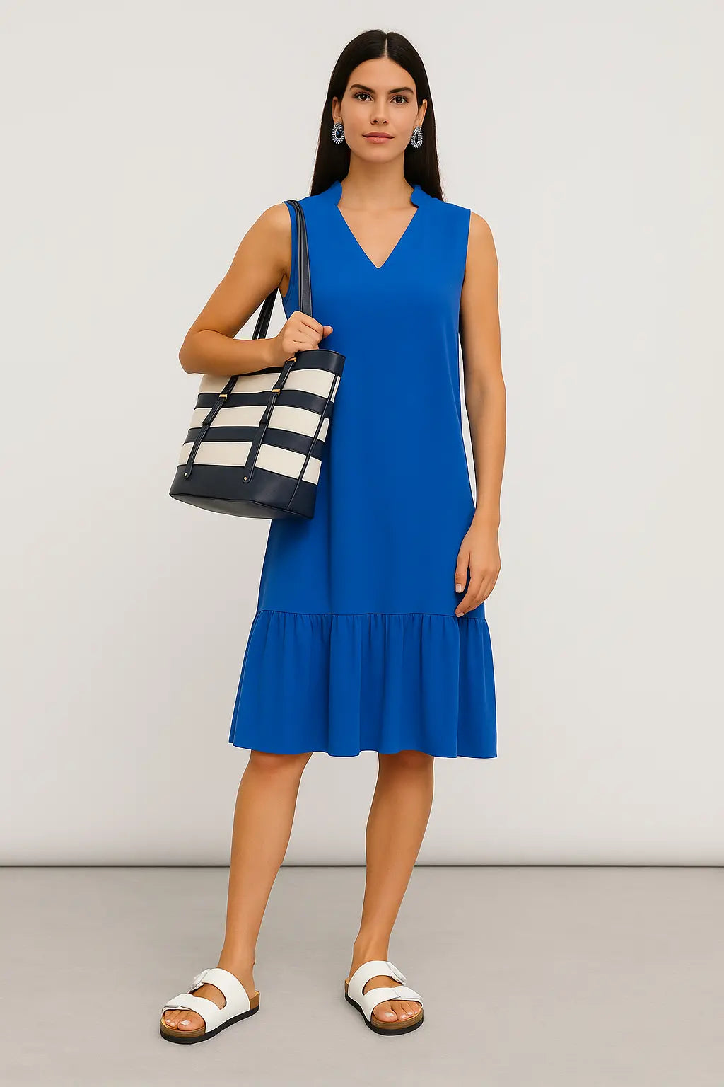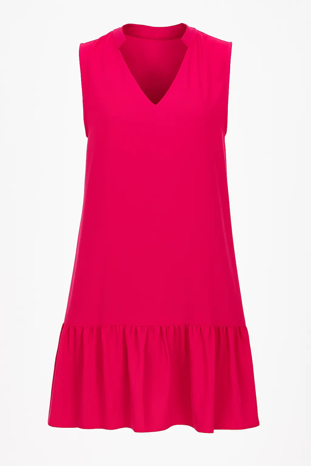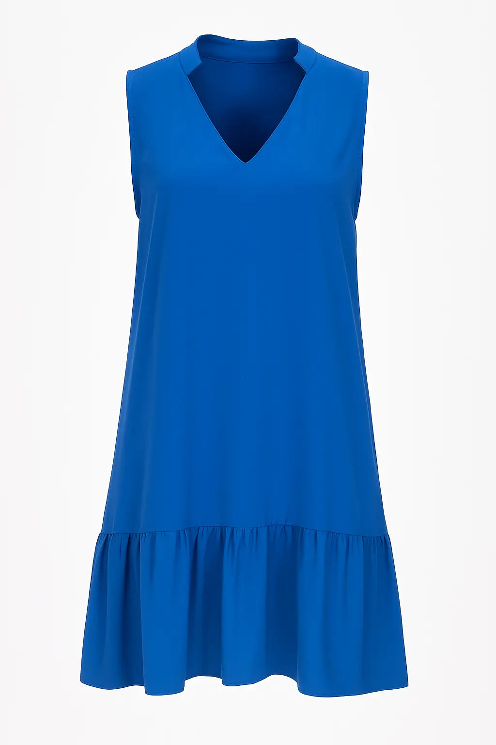 Questo abito in viscosa presenta un pratico collo pistagna e una balza sul fondo per un tocco di eleganza. Offre un comfort comodo e traspirante, rendendolo perfetto sia per il giorno che per la sera. Ideale da indossare ogni giorno.