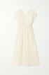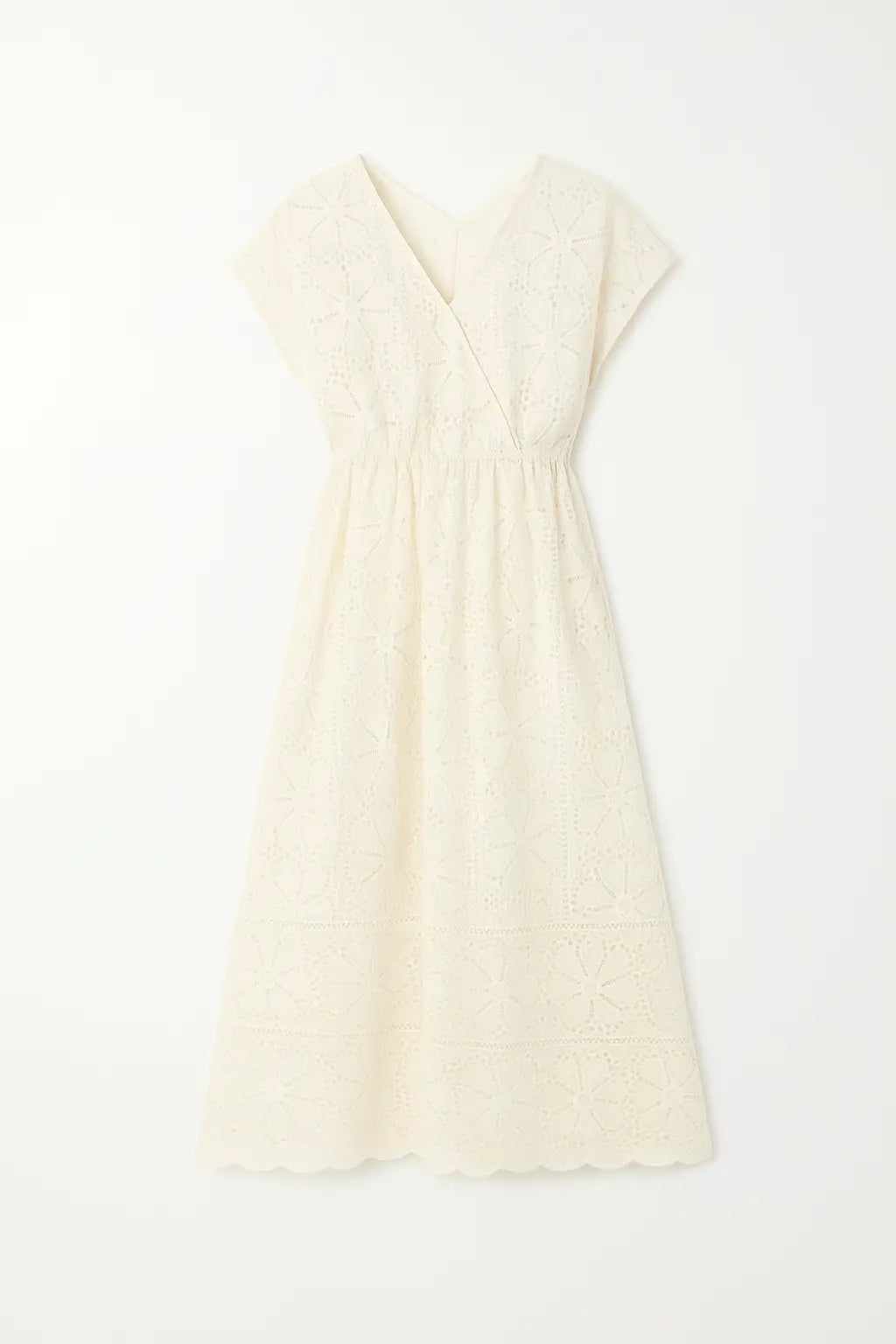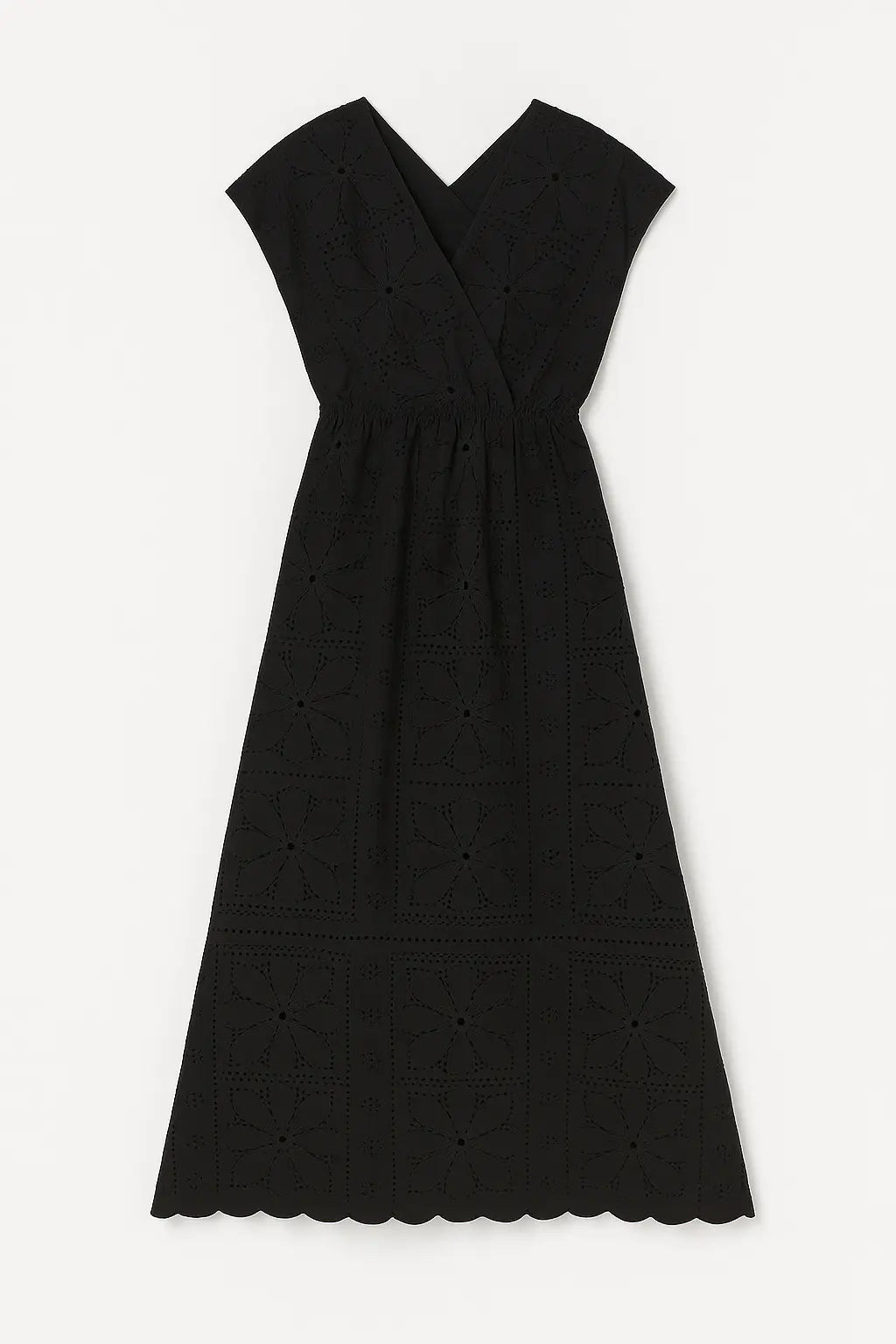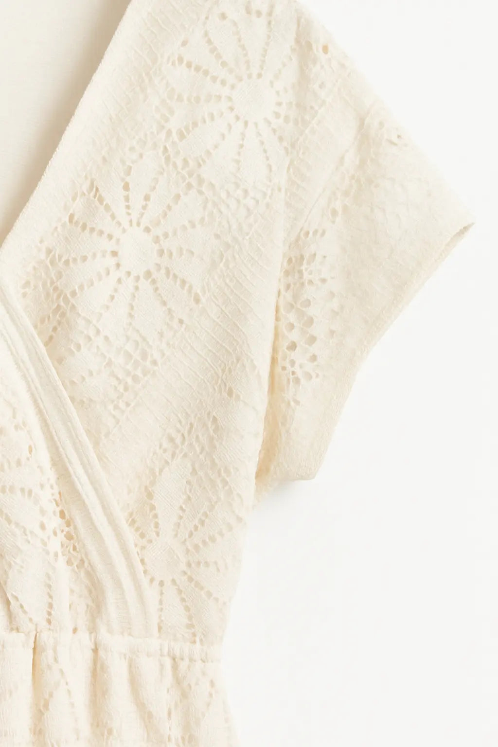 Scopri l’eleganza senza tempo del nostro abito midi in pizzo sangallo, perfetto per valorizzare la tua femminilità con delicatezza e stile. Realizzato in un raffinato tessuto traforato, questo vestito color avorio presenta un design incrociato sul décolleté, maniche corte ampie e una silhouette morbida e fluida che cade leggera fino al polpaccio. Il punto vita elasticizzato assicura una vestibilità confortevole e valorizzante per ogni fisicità. Ideale per cerimonie, giornate estive e occasioni speciali, questo capo unisce romanticismo e versatilità.