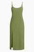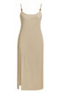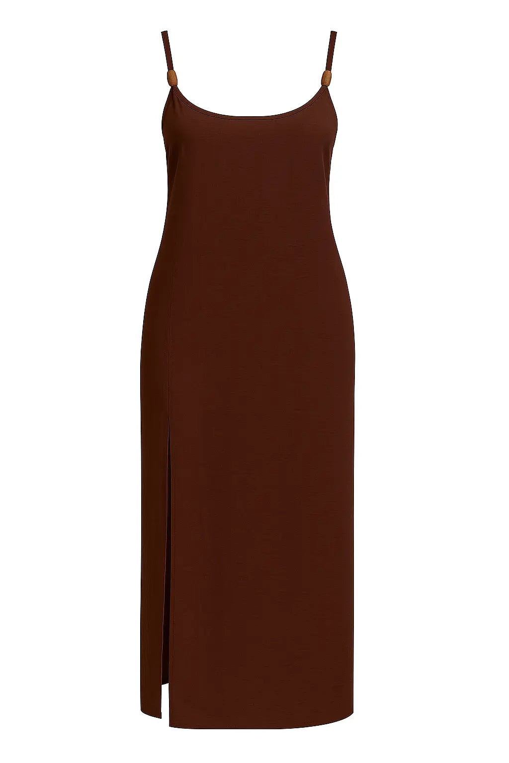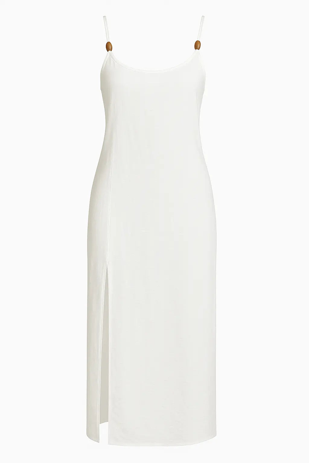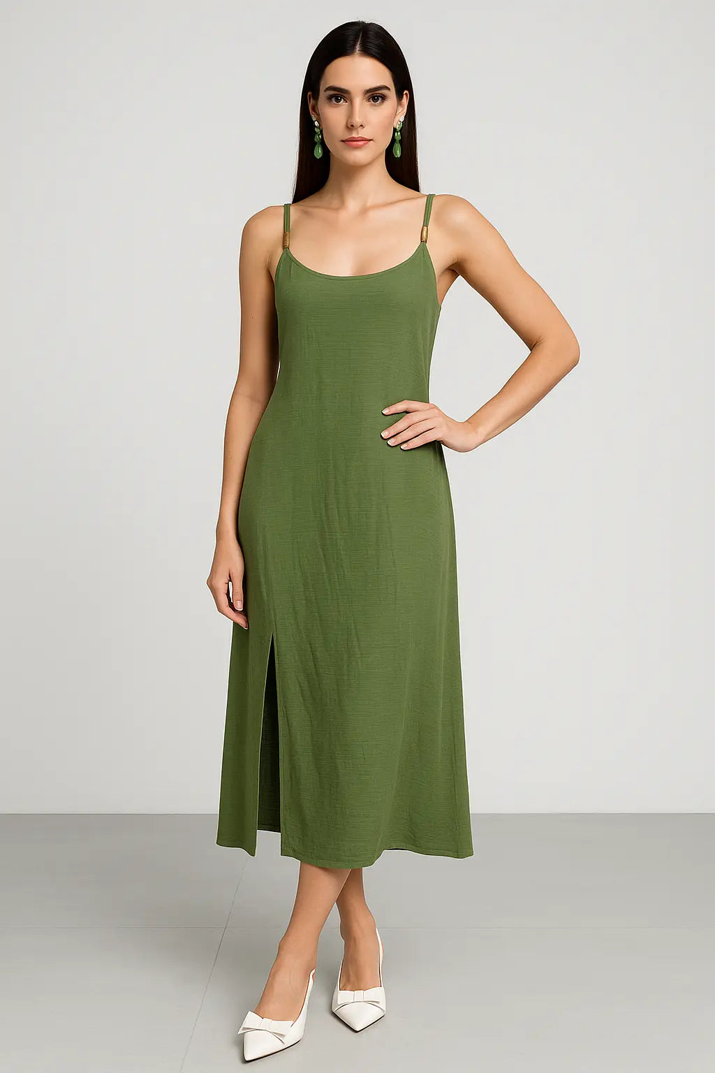 Il dettaglio distintivo? Le spalline sottili e il sensuale spacco laterale che dona slancio e movimento. Ideale sia per il giorno che per la sera, si abbina con facilità a sandali bassi, zeppe o sneakers per un look casual chic.