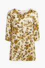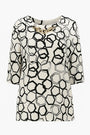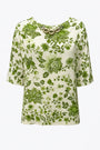 Blusa ampia e lunga in raso stampato a fantasia con accessorio scollo