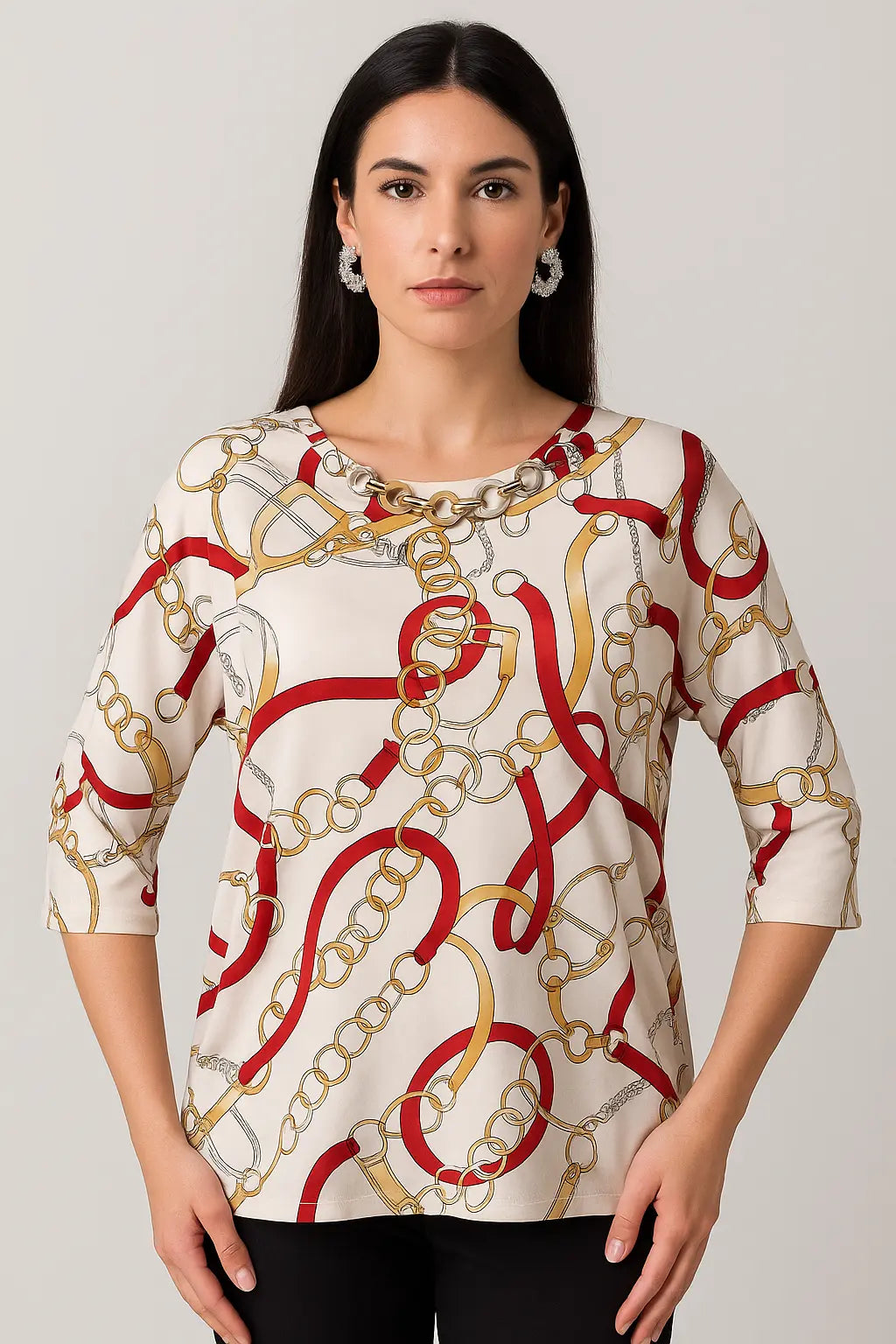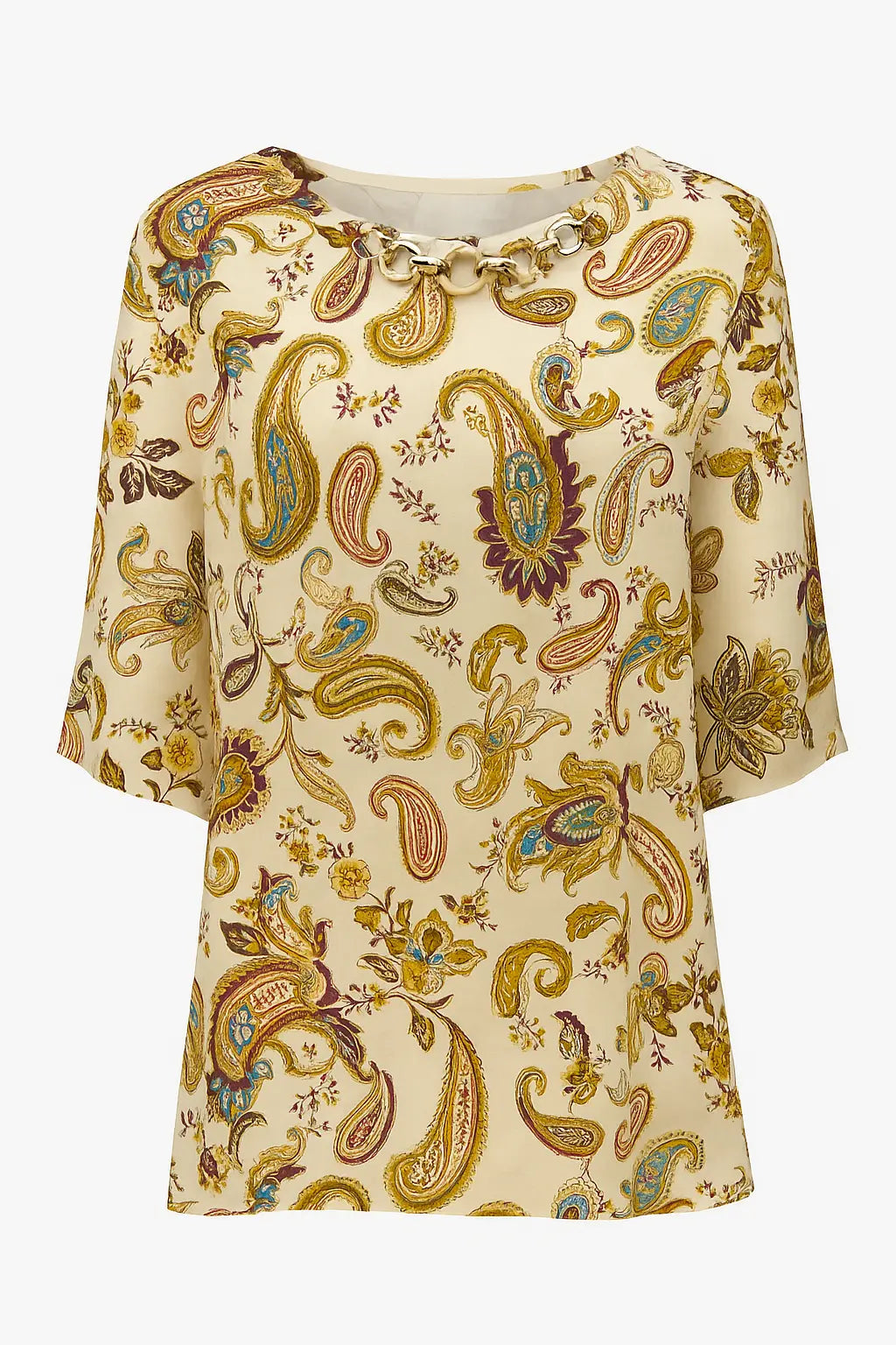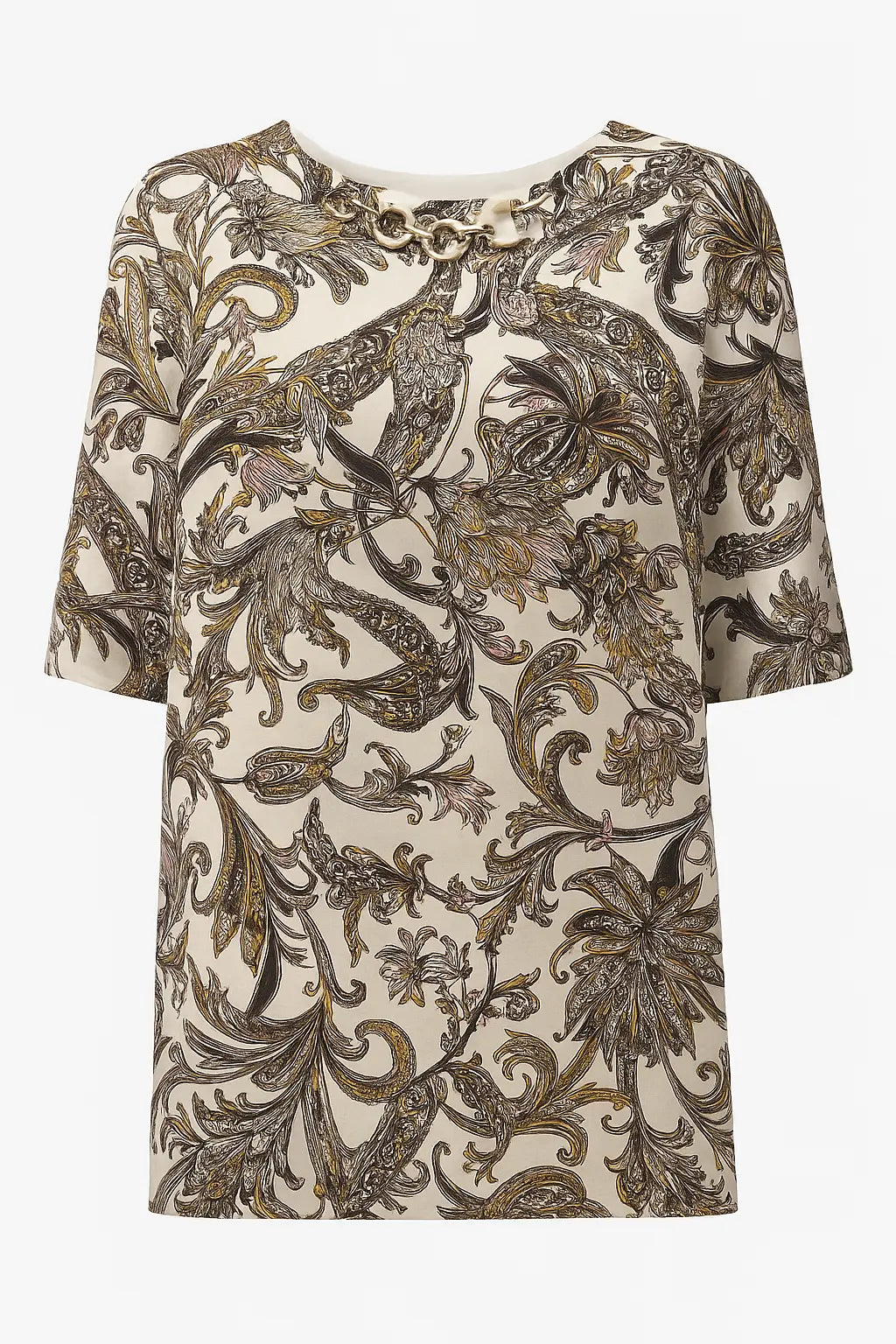 Blusa morbida con fantasia catene in stile barocco-equestre