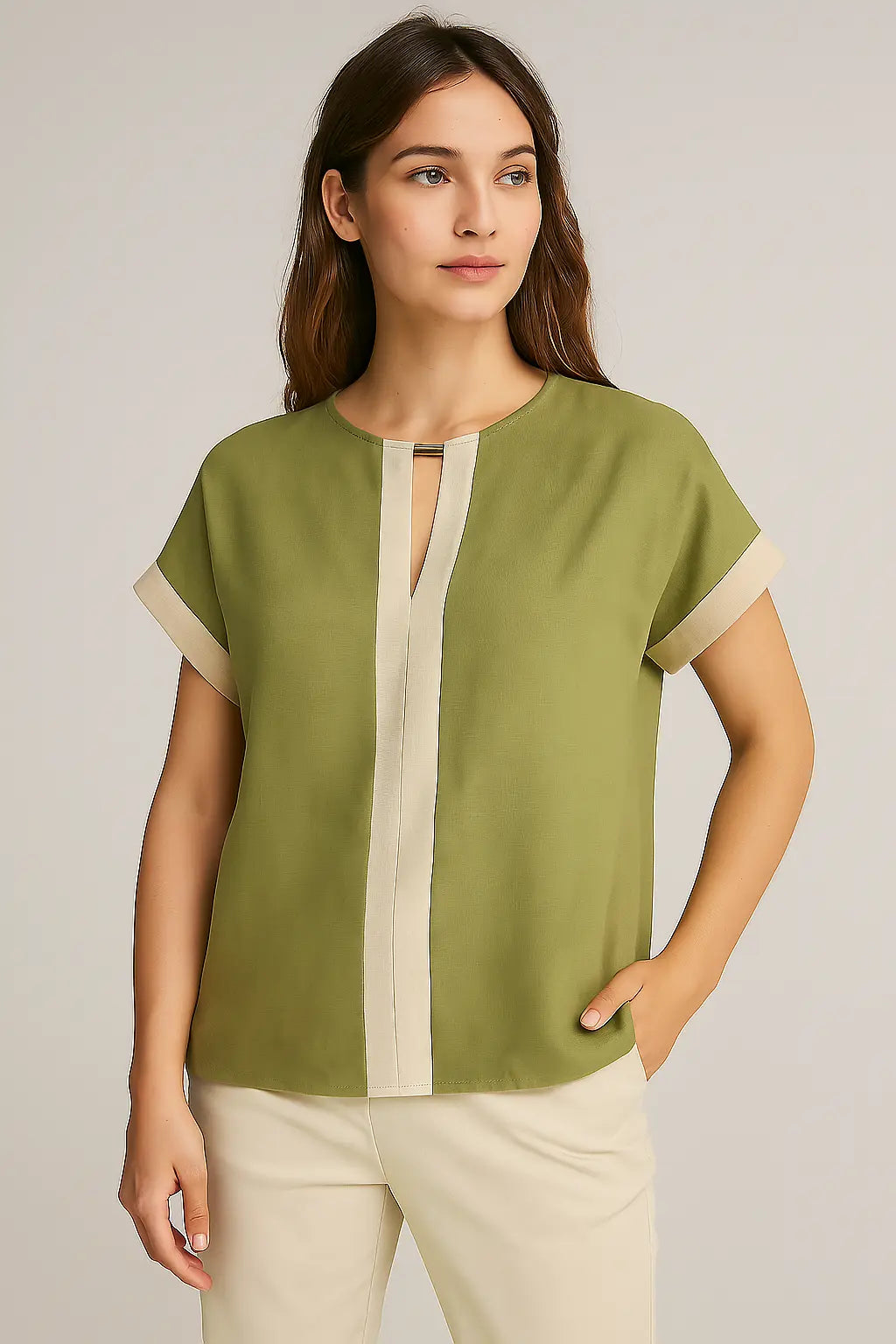 Questo pantalone ampio è realizzato in morbida viscosa che garantisce comfort e libertà di movimento. I passanti larghi e i bottoni effetto legno frontali sono dettagli trendy che lo rendono un capo unico. Il retro bustino elastico garantisce una vestibilità perfetta. Da abbinare alla blusa coordinata per un look completo.