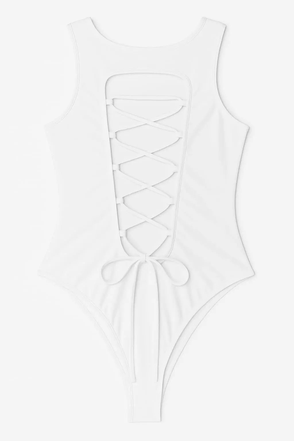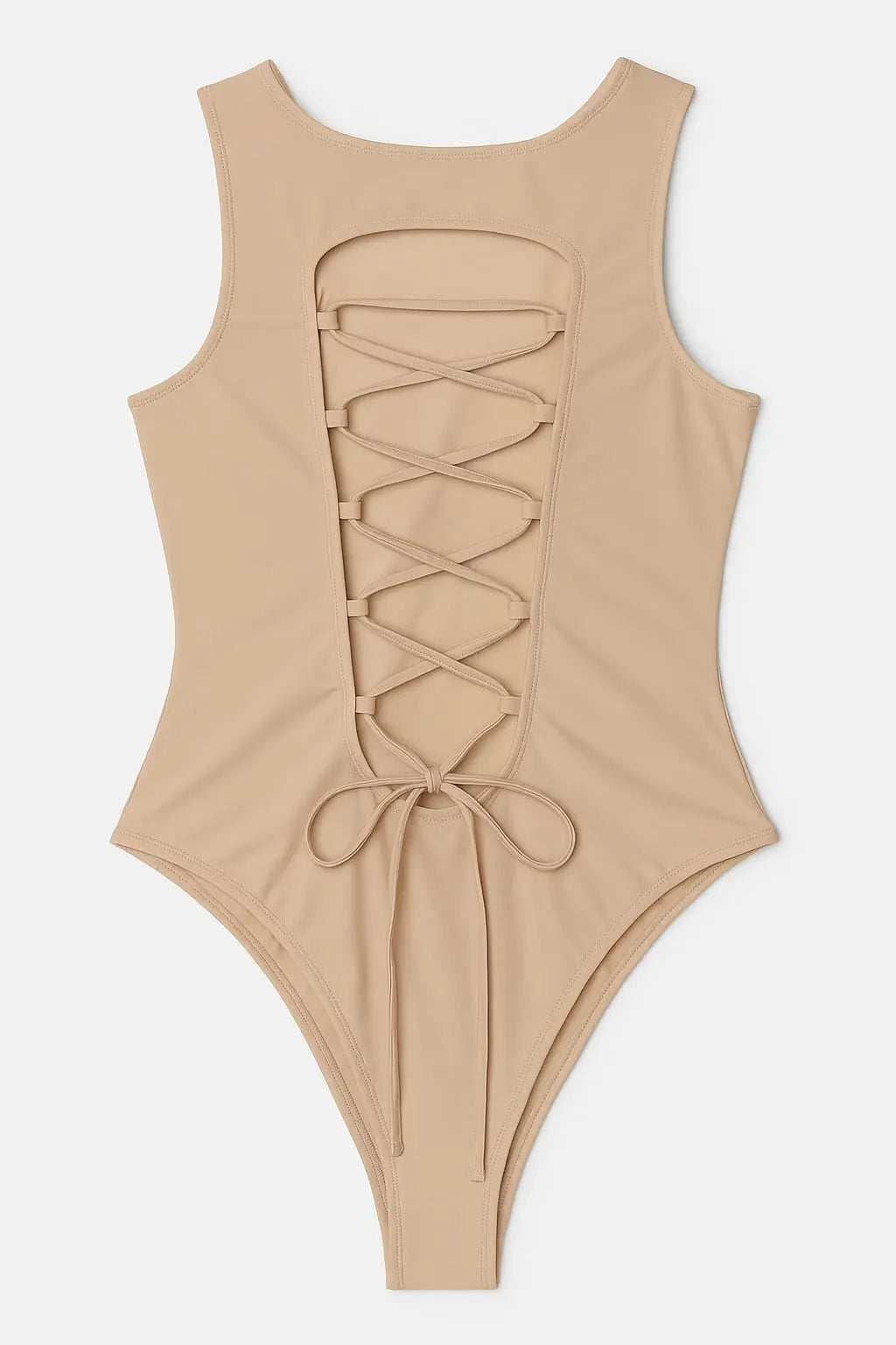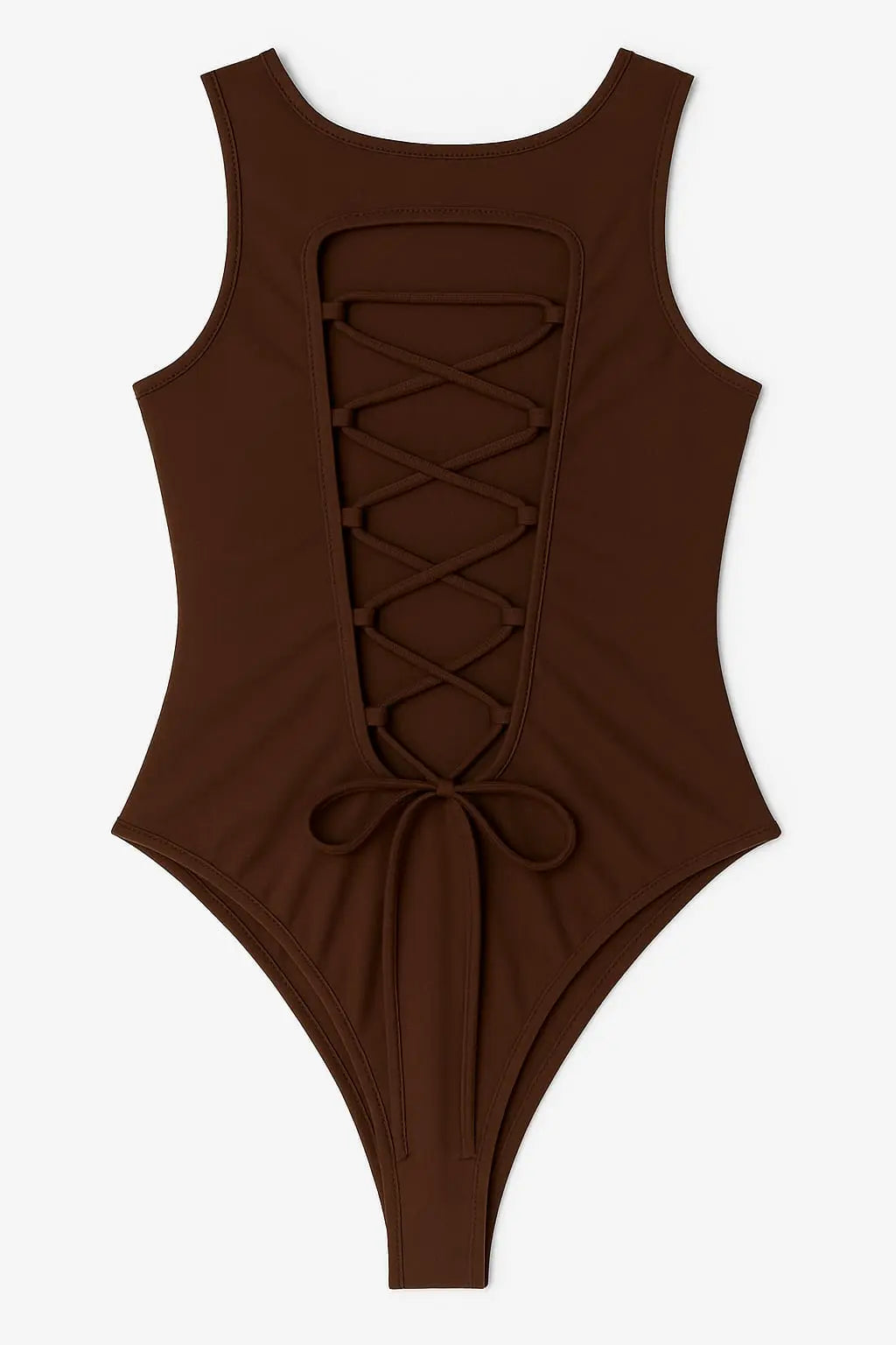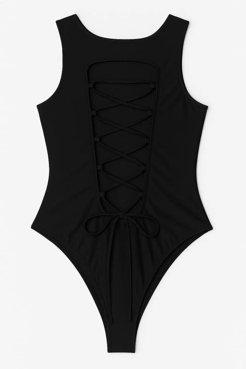 Questo body slim fit con lacci intrecciati posteriori è perfetto per valorizzare la tua silhouette. Il design accattivante ti farà sentire al centro dell'attenzione, mentre i lacci intrecciati aggiungono un tocco di stile ricercato. Indossalo per un look unico e femminile.