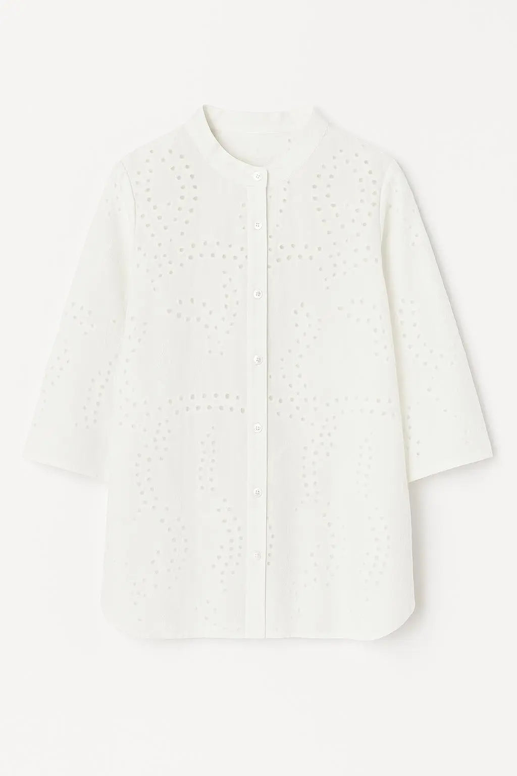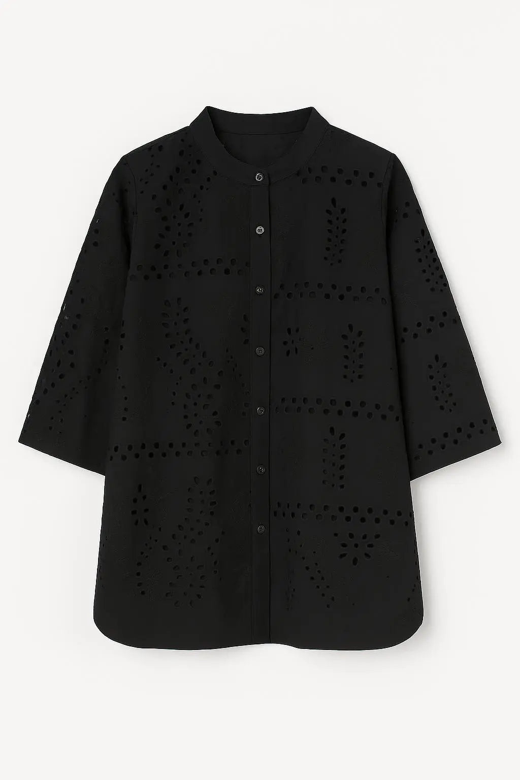 Questa sofisticata camicia con un delicato pizzo sangallo è l'ideale per i tuoi look estivi. Grazie al suo design ricercato e al pratico collo coreana, questa camicia è perfetta per ogni occasione. Le mezze maniche e la vestibilità regular ti doneranno uno stile chic che puoi abbinare facilmente a pantaloni in cotone o chambray.