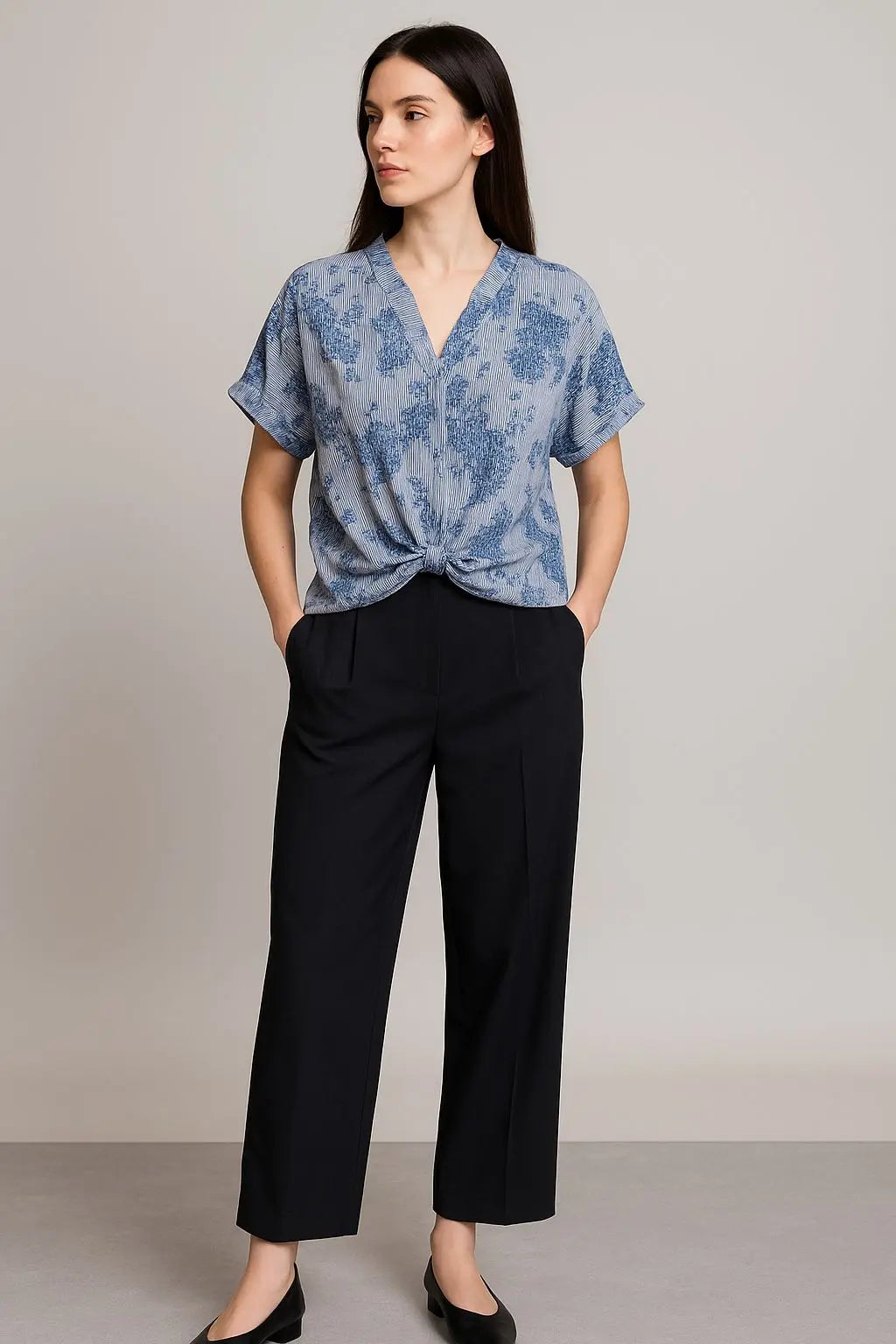 Camicia con manica kimono , abbottonatura e nodo frontali