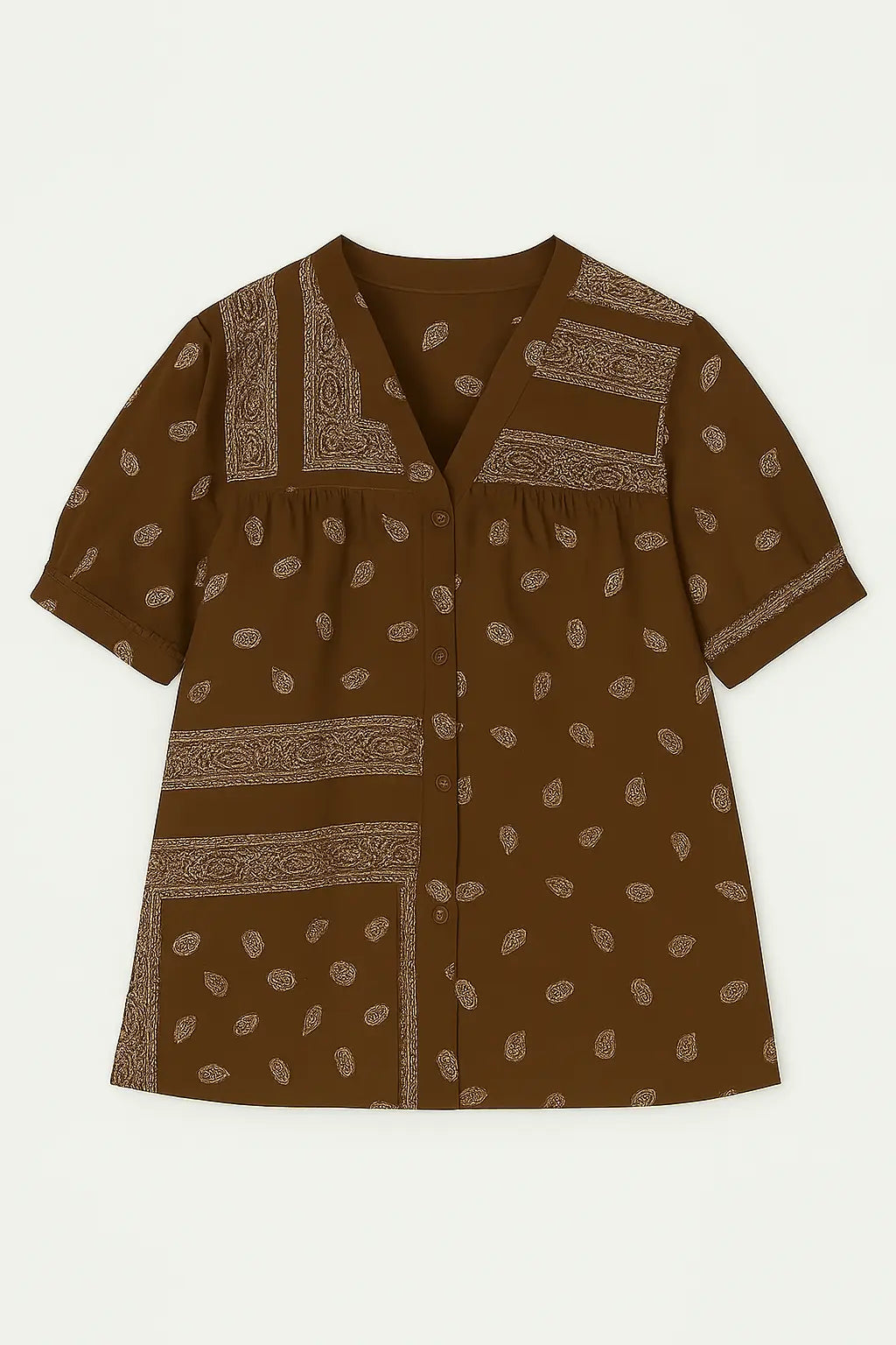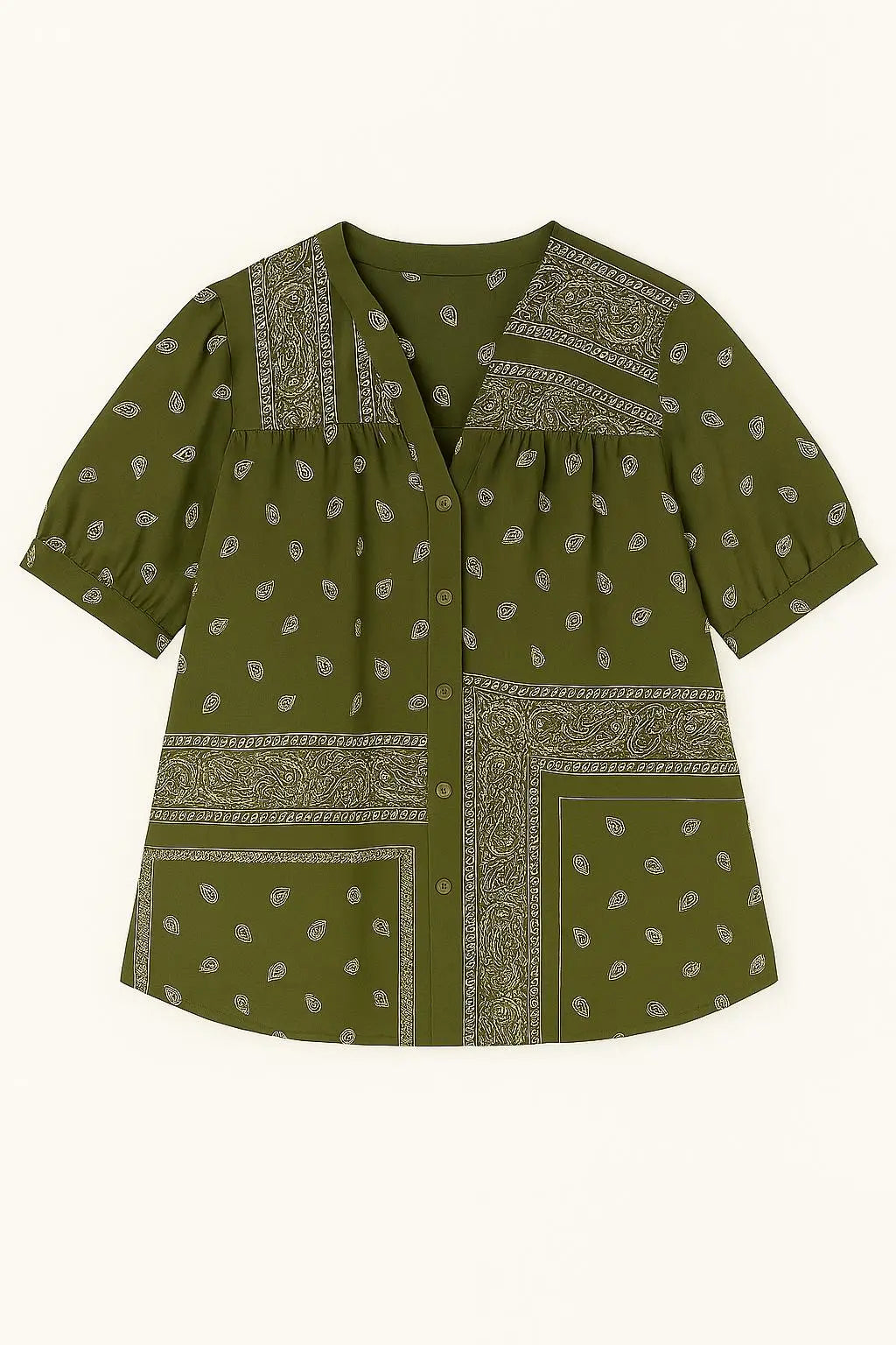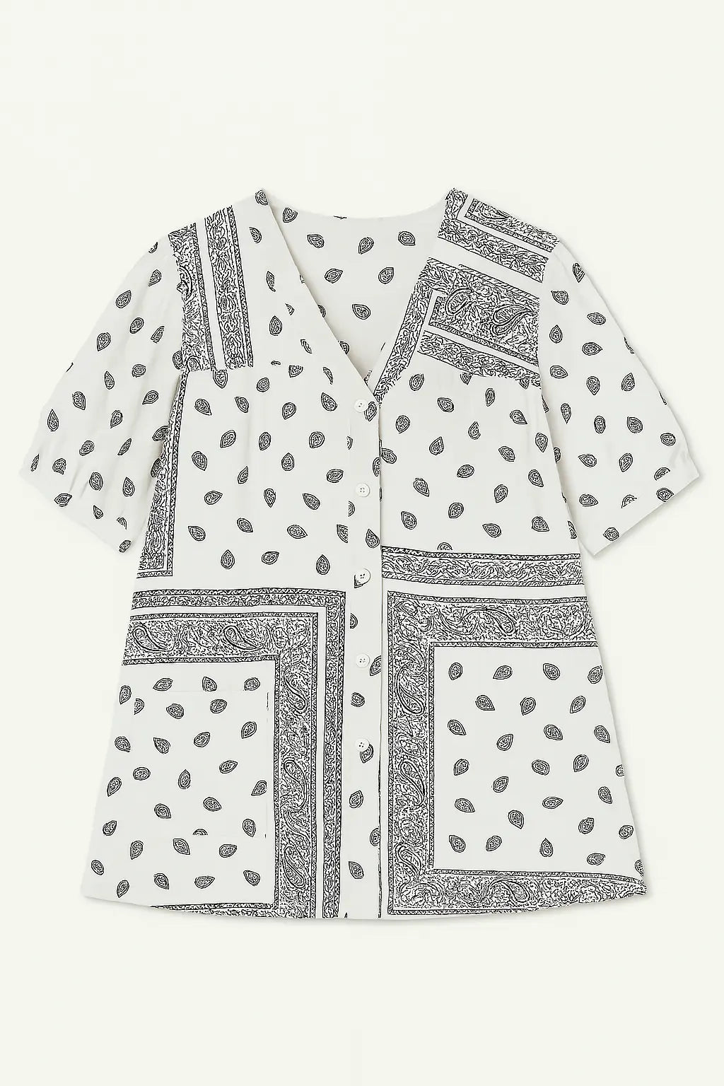 La camicia con maniche ampie e fantasia bandiera è comoda e chic, perfetta da abbinare a pantaloni coordinati o a pants a tinta unita. La stampa bandana segue le ultime tendenze di moda, rendendo questo capo un must-have per ogni guardaroba.