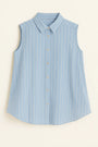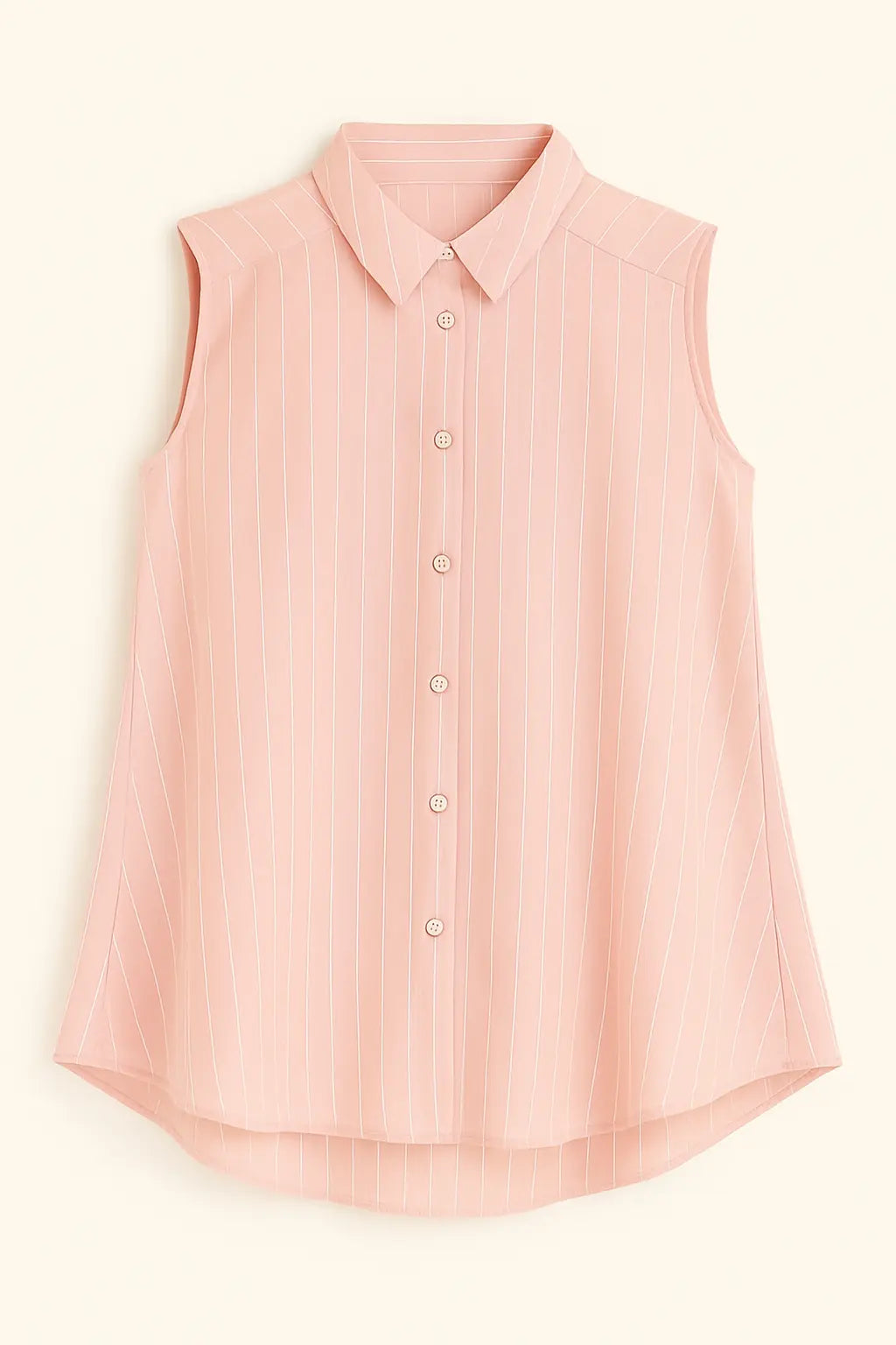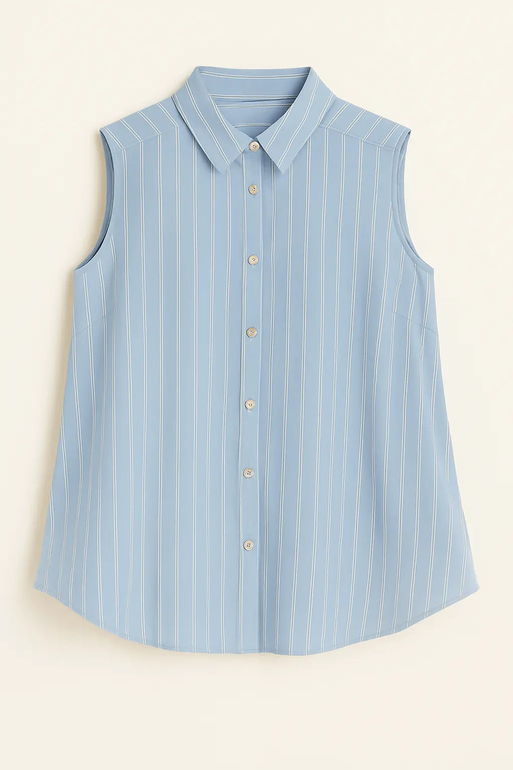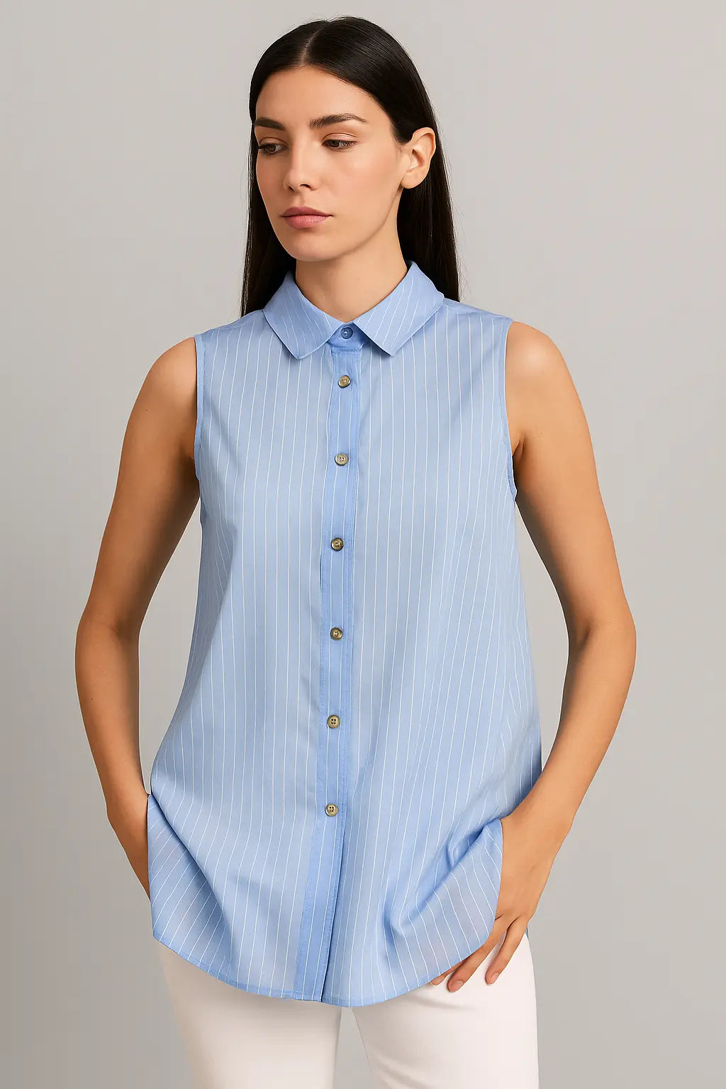 Design: Camicia senza maniche con colletto classico e abbottonatura frontale