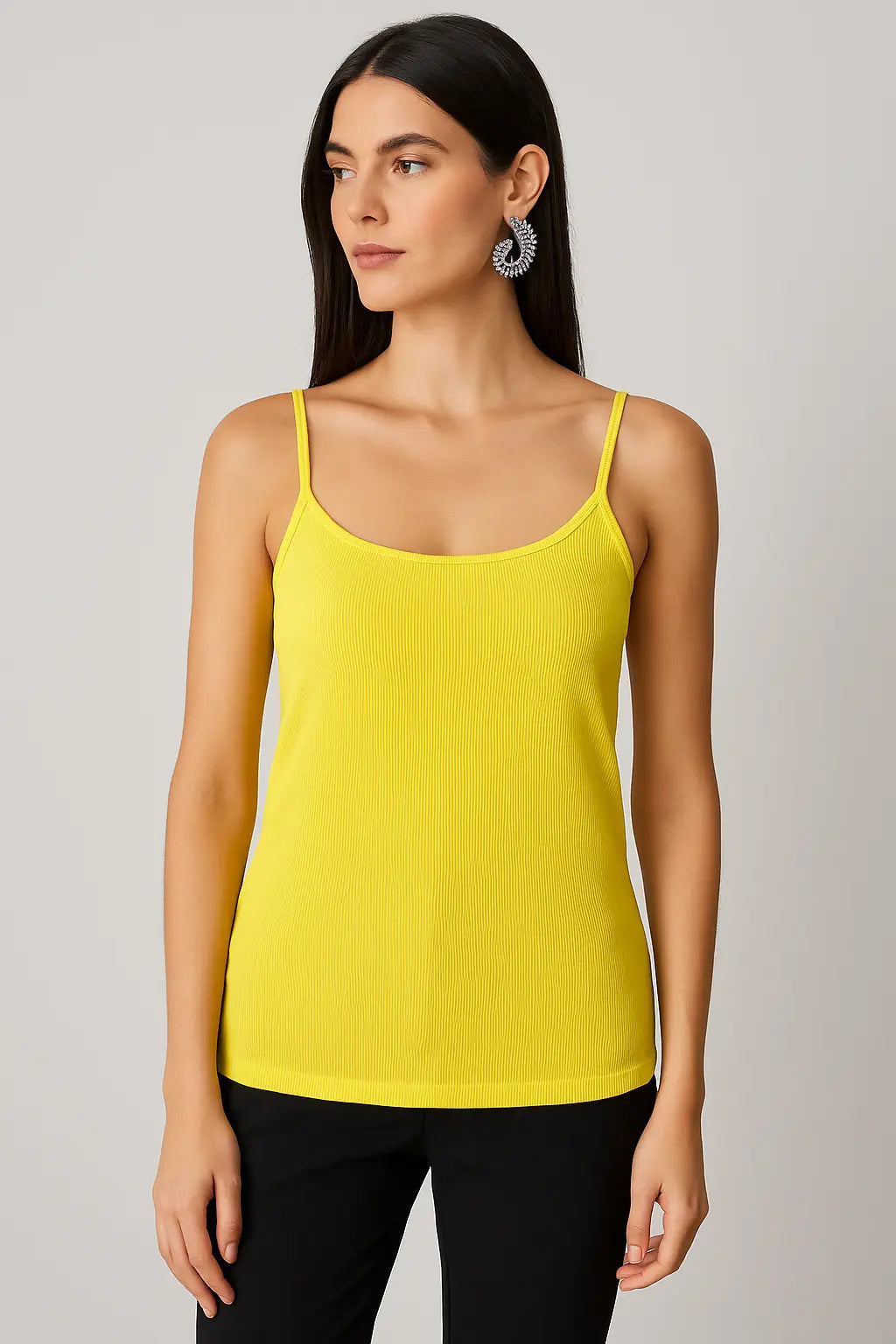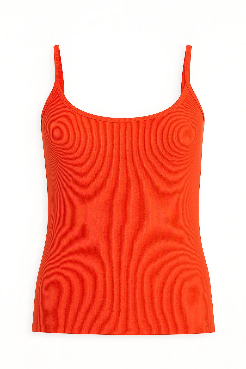 Un capo essenziale dal fascino deciso: questo top a costine in vibrante rosso India è la scelta ideale per valorizzare ogni look estivo. Caratterizzato da una vestibilità aderente e confortevole, presenta una texture a costine che dona movimento e struttura, mentre le sottili spalline e lo scollo arrotondato aggiungono un tocco femminile ed elegante. Perfetto da indossare da solo o come base sotto giacche e camicie, questo top unisce semplicità, versatilità e stile in un unico design iconico.
