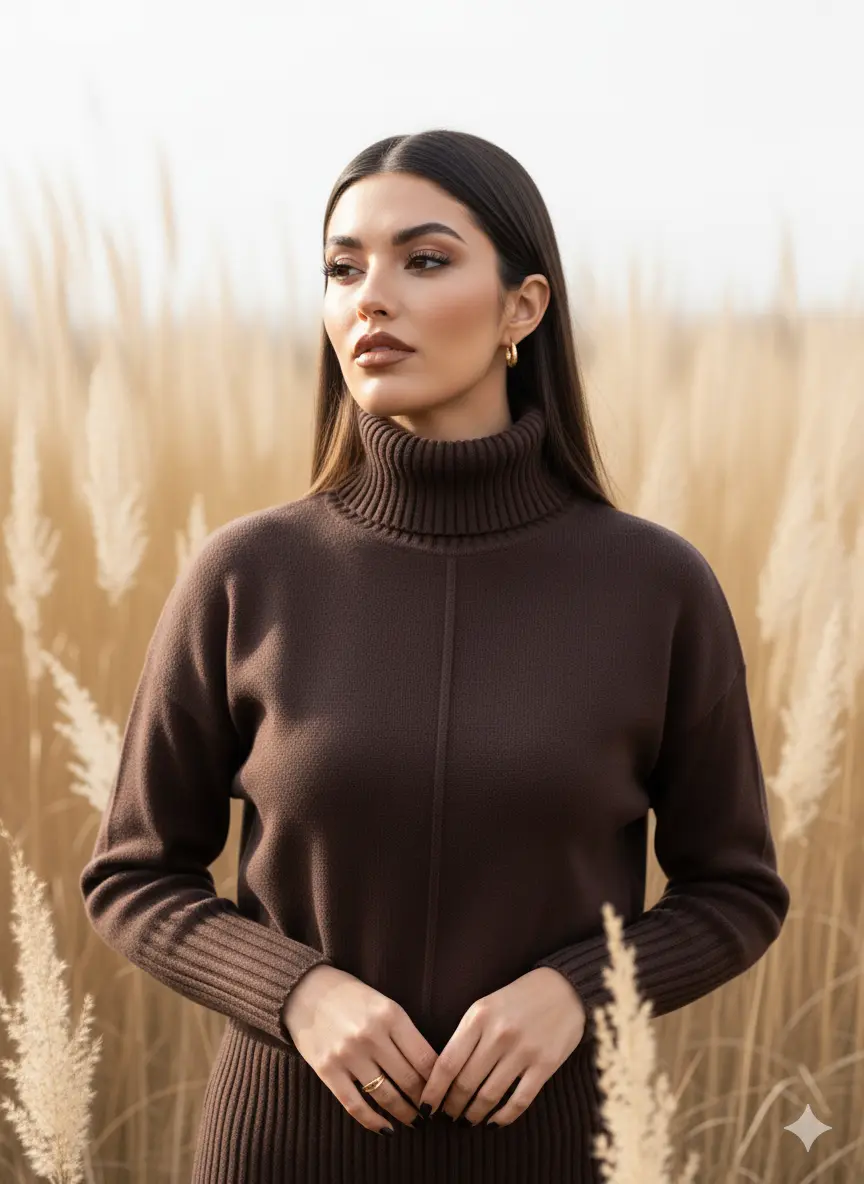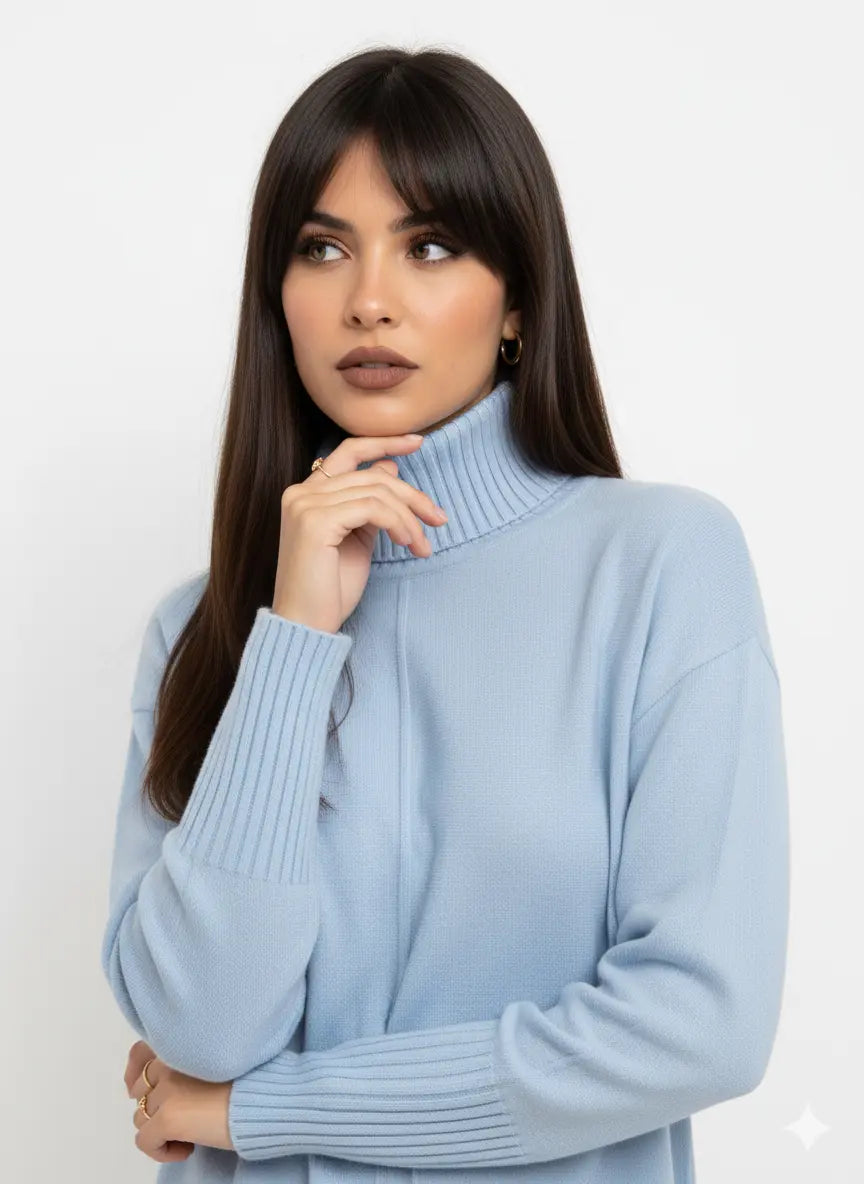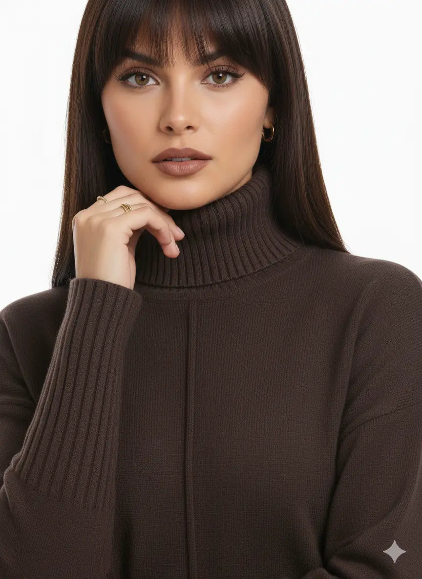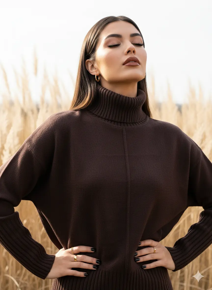 • 🧥 Dolcevita alto a coste – caldo, morbido e avvolgente