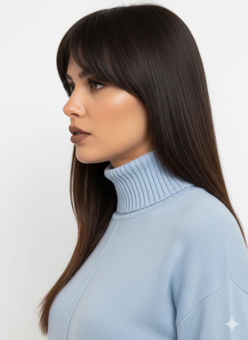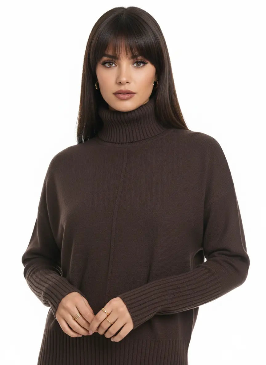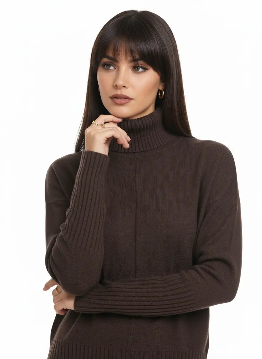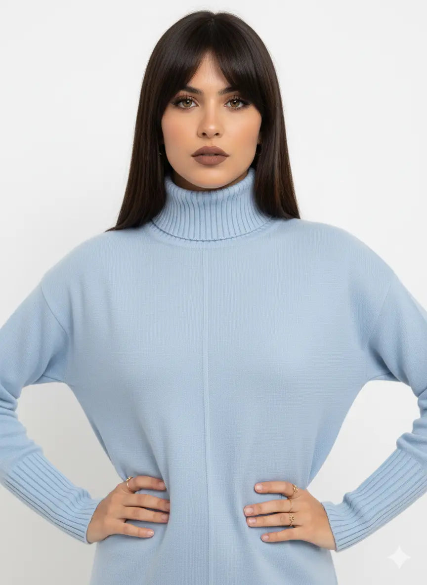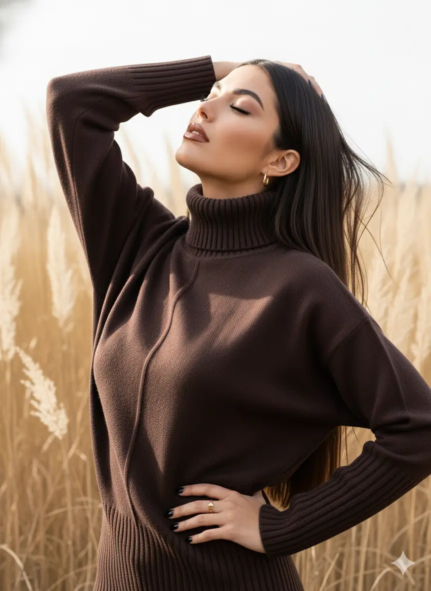 • 🧥 Dolcevita alto a coste – caldo, morbido e avvolgente
