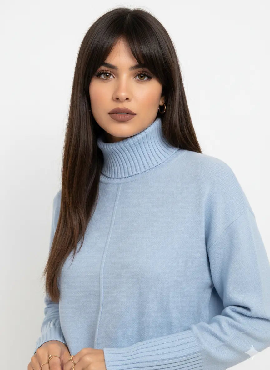 La maglia dolcevita con profili a costina è pensata per chi ama la semplicità con un tocco di classe.