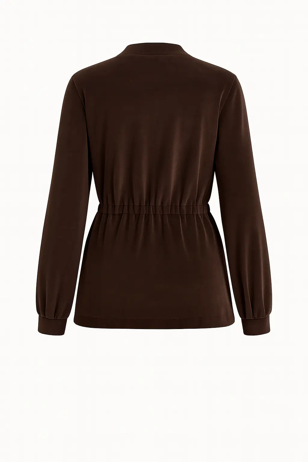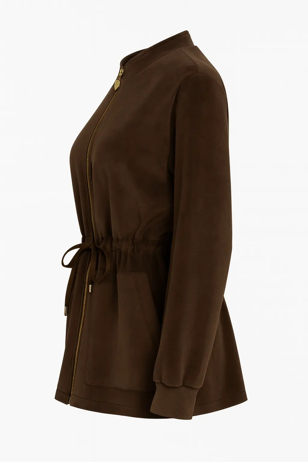 Un capo versatile e sofisticato, ideale per chi desidera unire il comfort del tessuto alla raffinatezza dei dettagli. Questa felpa presenta coulisse in vita che valorizza la silhouette, tasche pratiche e zip con dettaglio gold per un tocco glam. Perfetta per outfit casual-chic, da indossare sia a casa che per il tempo libero.