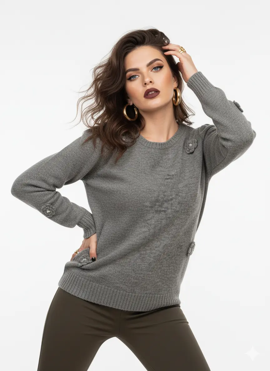 Un capo che unisce la morbidezza della maglia al fascino dei dettagli preziosi.