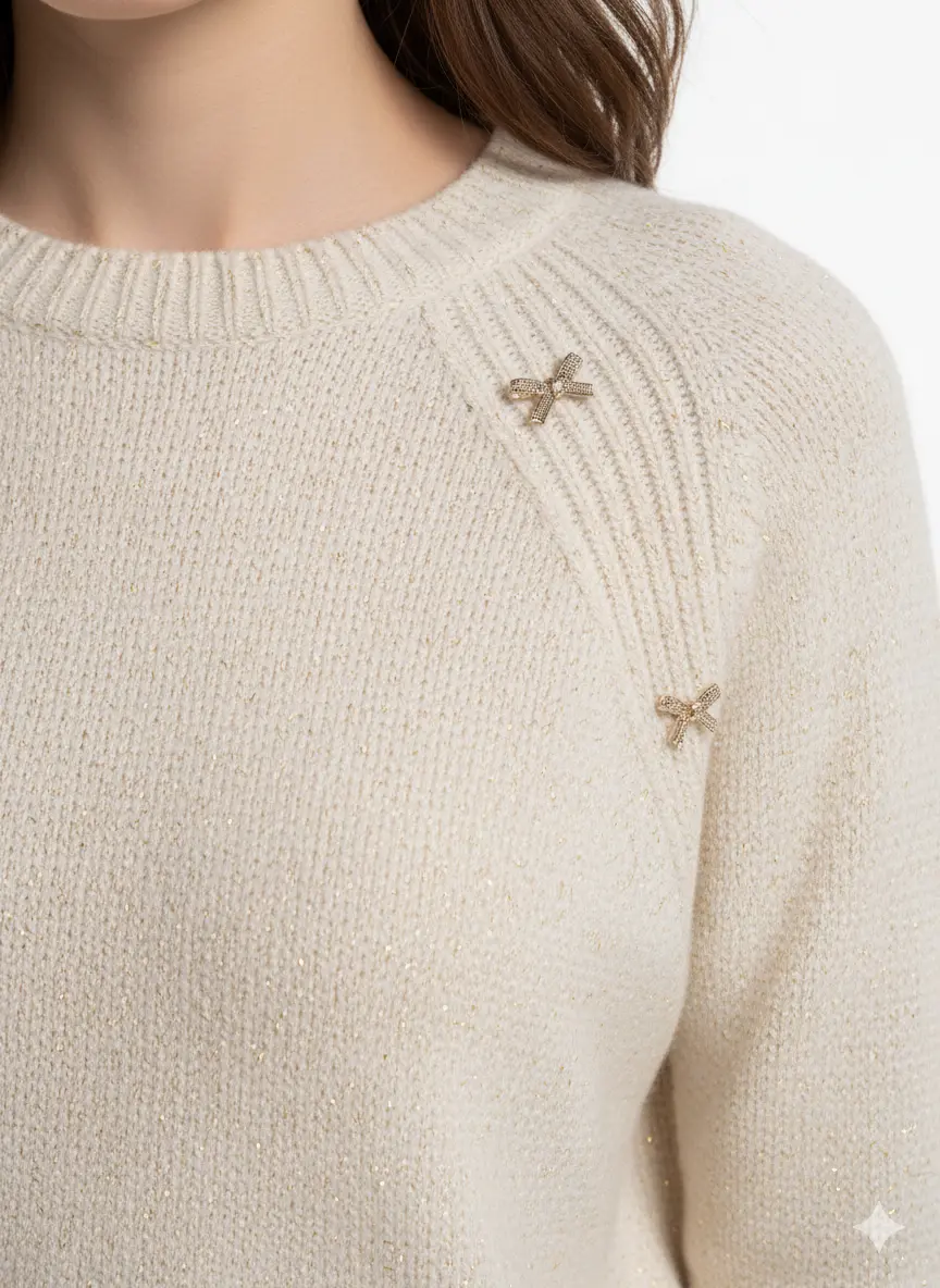 🌟 Luce e raffinatezza: il filo lurex e i fiocchi gioiello impreziosiscono ogni outfit.