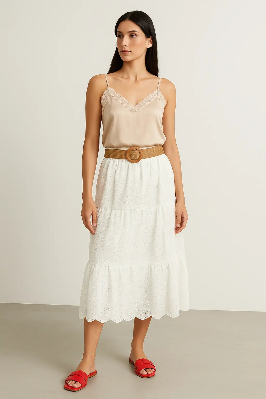 Gonna sangallo bianca con cintura
