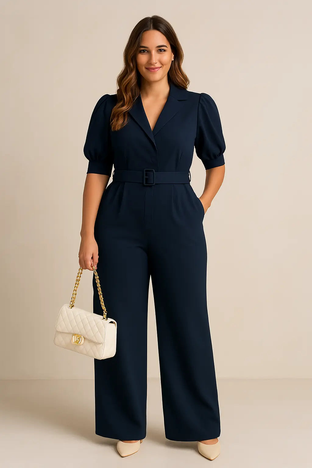 Questa magnifica jumpsuit a palazzo con cintura e maniche a palloncino è perfetta per i tuoi impegni formali o eventi eleganti. Il fit morbido e la comodità della tuta ti faranno sentire a tuo agio senza mai rinunciare a classe e stile ricercato. Con il palazzo, la cintura e le maniche a palloncino, questa jumpsuit esalta la tua figura e il tuo look.