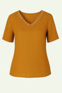 Maglia con a mezze maniche con passamaneria sullo scollo a V