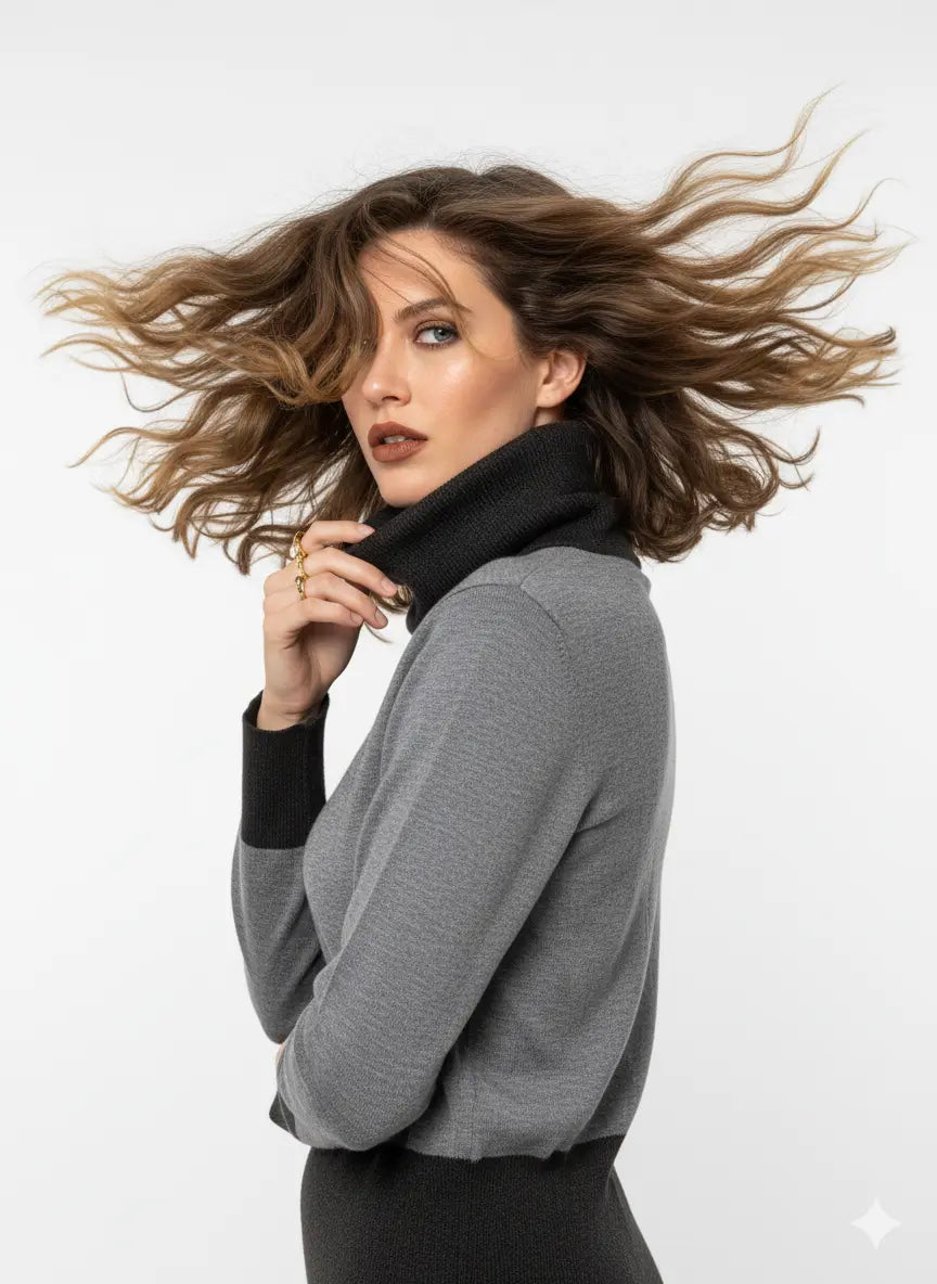 🧣 Collo: removibile e reversibile — dolcevita o girocollo