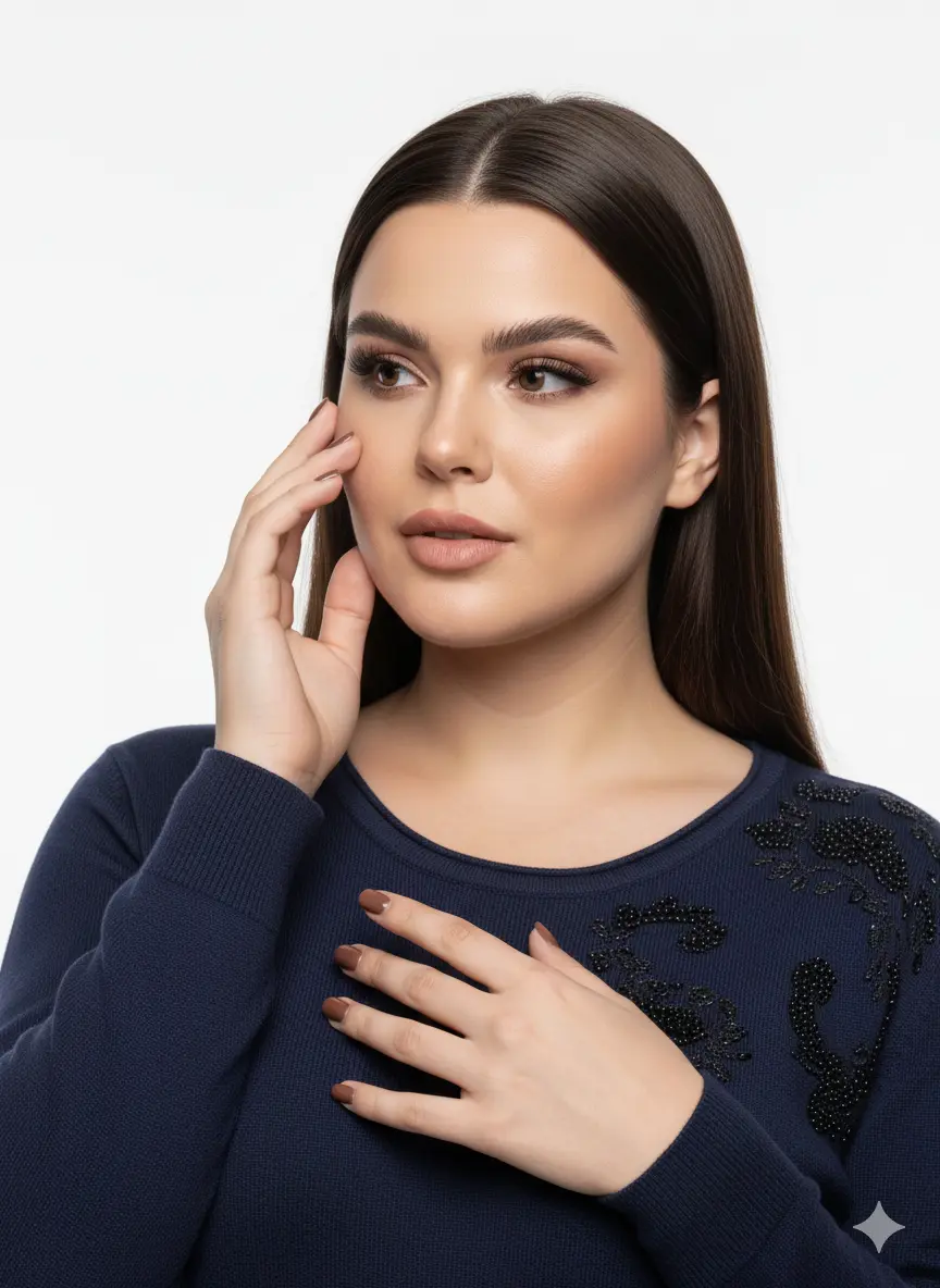 Un capo raffinato che unisce il calore della maglia al fascino dei ricami fatti a mano. Il dettaglio di perline nere ricamate dona luce e movimento, rendendo questo modello perfetto sia per look casual chic che per outfit più eleganti. Disponibile in due varianti colore: mattone e blu notte. 🌹