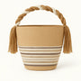 Corpo in raffia intrecciata con righe orizzontali a contrasto