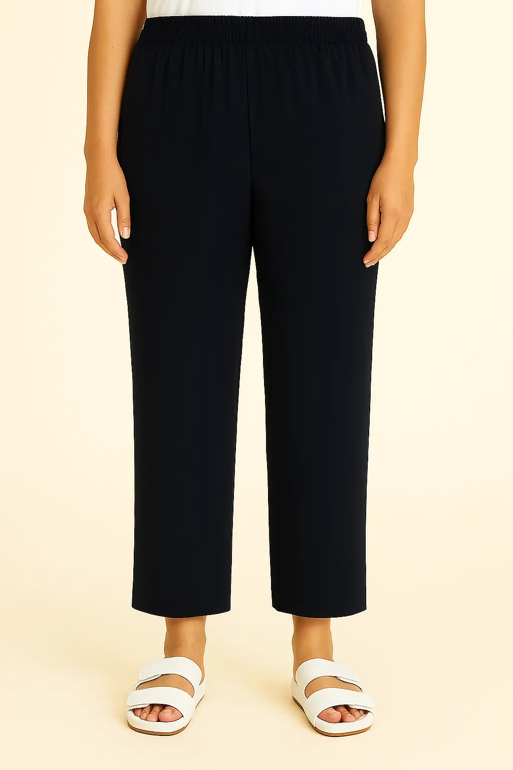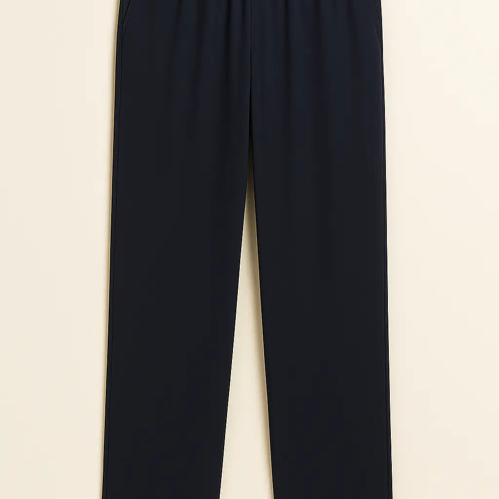 Versatili, comodi e impeccabili: questi pantaloni dritti in tessuto stretch e morbido rappresentano il perfetto equilibrio tra praticità e stile. La linea pulita e minimal è pensata per valorizzare la silhouette senza rinunciare al comfort grazie alla vita elasticizzata. Il blu navy, raffinato e intramontabile, li rende ideali sia per l’ufficio che per il tempo libero.