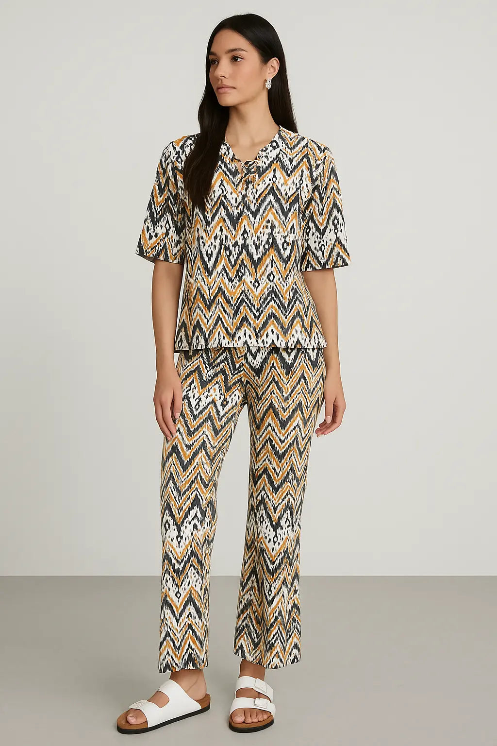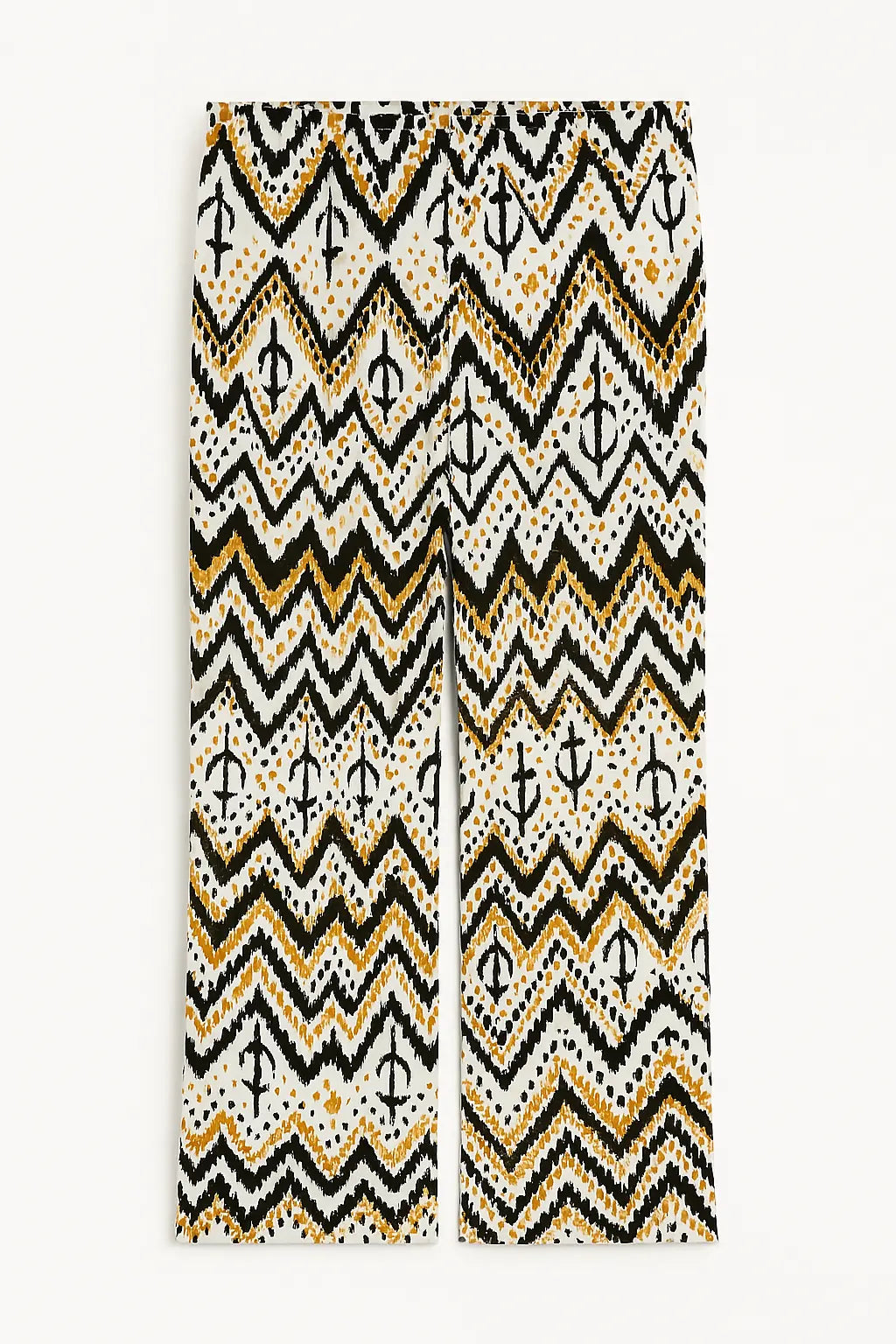 Il pantalone ampio in fantasia etno è perfetto per chi cerca un look comodo e alla moda. Grazie al bustino elastico e al fit comodo, si adatta perfettamente a ogni corpo. La fantasia etnica aggiunge un tocco di originalità al tuo outfit quotidiano. Sii sempre alla moda con il tuo daily mood!