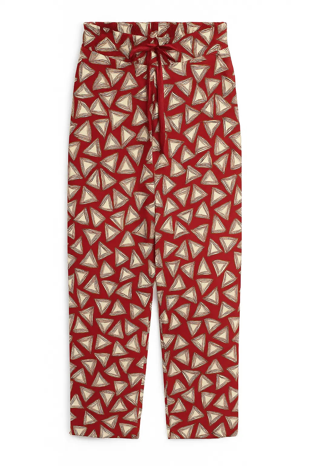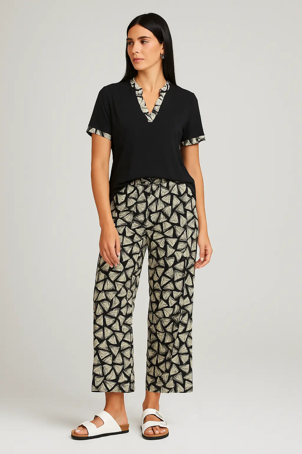 Pantalone a gamba dritta in misto viscosa a fantasia con coulisse in vita