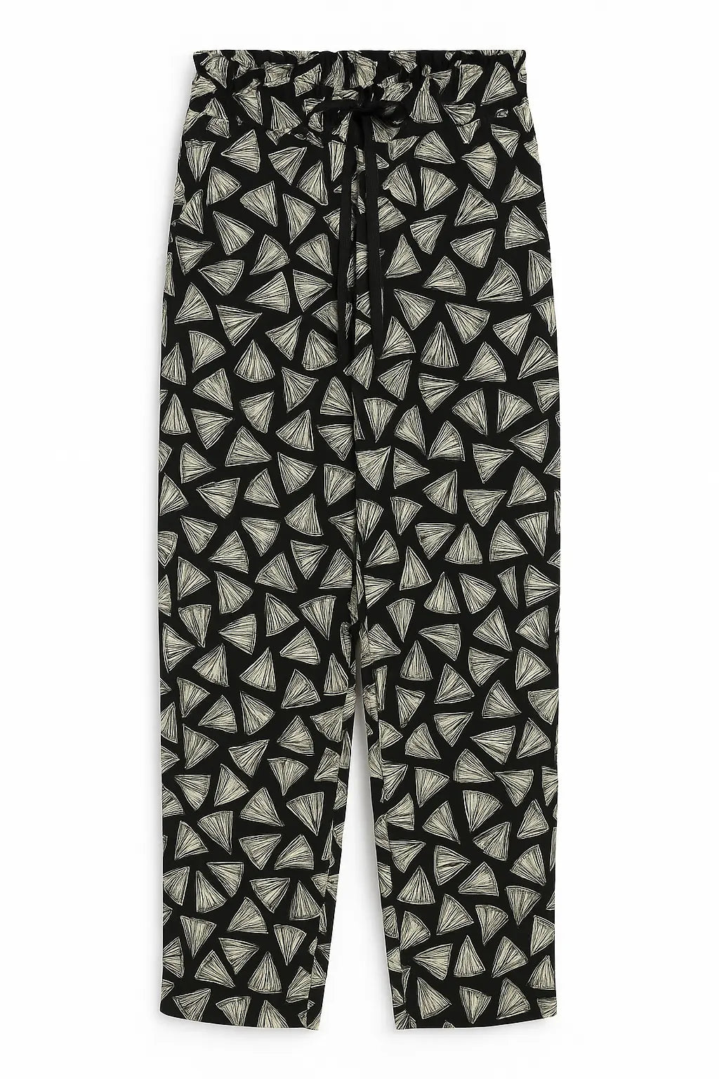 Dai una sferzata di energia al tuo guardaroba con questo pantalone fantasia dal fit rilassato e comfort. Realizzato in un tessuto fluido e leggero, presenta un taglio a gamba dritta che valorizza la silhouette mantenendo il massimo della comodità. Il motivo grafico all-over crea un effetto dinamico e moderno, mentre la vita elasticizzata con coulisse regolabile garantisce una vestibilità perfetta. Un capo versatile, perfetto per outfit casual o più ricercati con l'aggiunta di accessori statement.