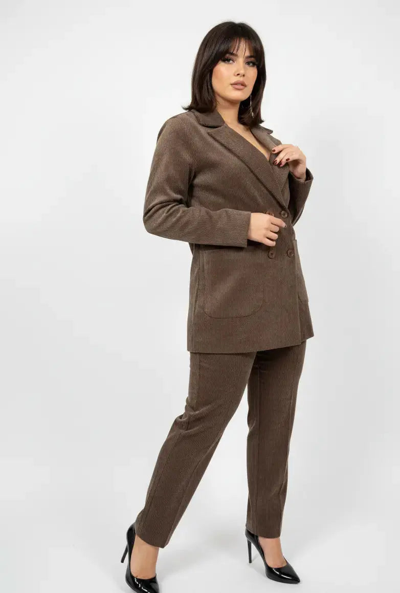 Eleganza senza tempo e comfort quotidiano si incontrano in questo pantalone in velluto a coste color cioccolato. La sua linea dritta e il tessuto a coste rendono il capo sofisticato e versatile, perfetto per look casual chic o outfit più ricercati.