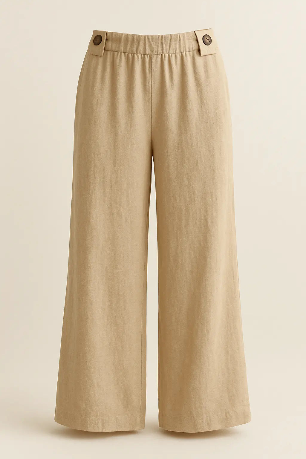 I nostri pantaloni ampi in viscosa sono realizzati con passanti larghi e bottoni in legno. La viscosa garantisce un tessuto fresco e leggero, mentre i passanti larghi e la vita elastica offrono un fit comodo e regolabile. I bottoni in legno aggiungono un tocco naturale e unico.