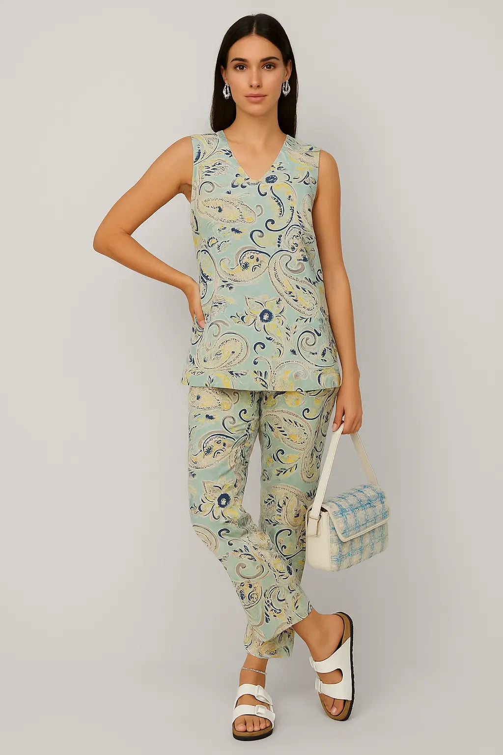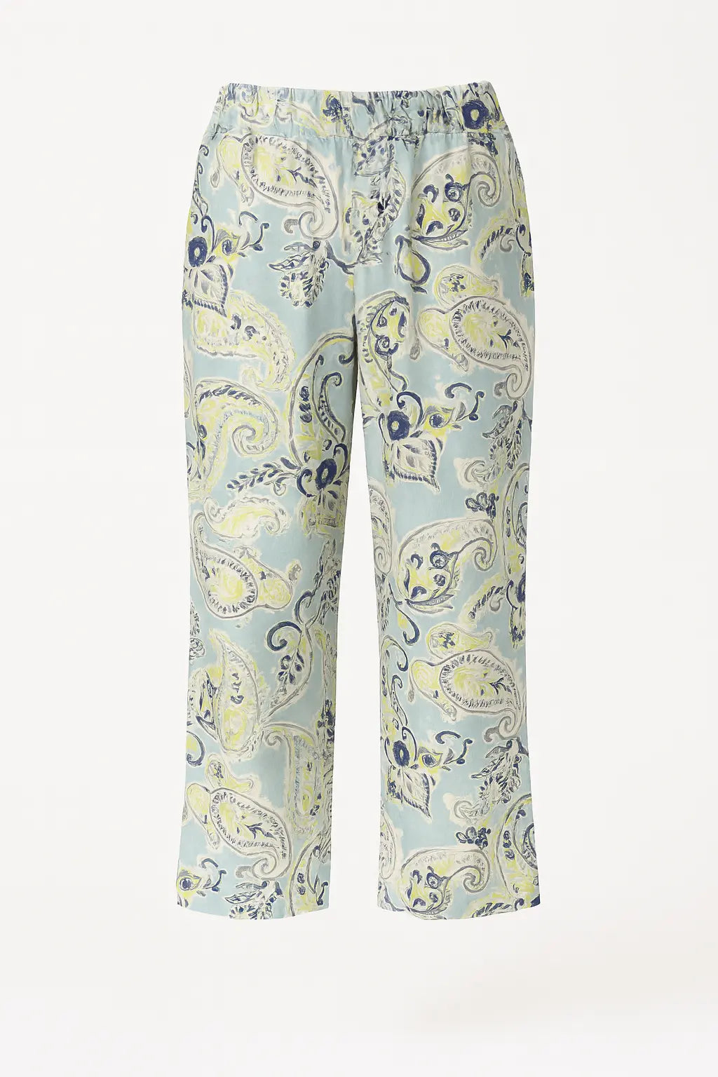 I nostri pantaloni stampati con motivo paisley sono un'esplosione di colori vitaminici; offrono il massimo comfort grazie al bustino semi-elastico e alle tasche. Perfetti per uno stile unico e vivace, ideali per ogni occasione. Aggiungi un tocco di allegria al tuo guardaroba con questi pants eleganti e pratici.