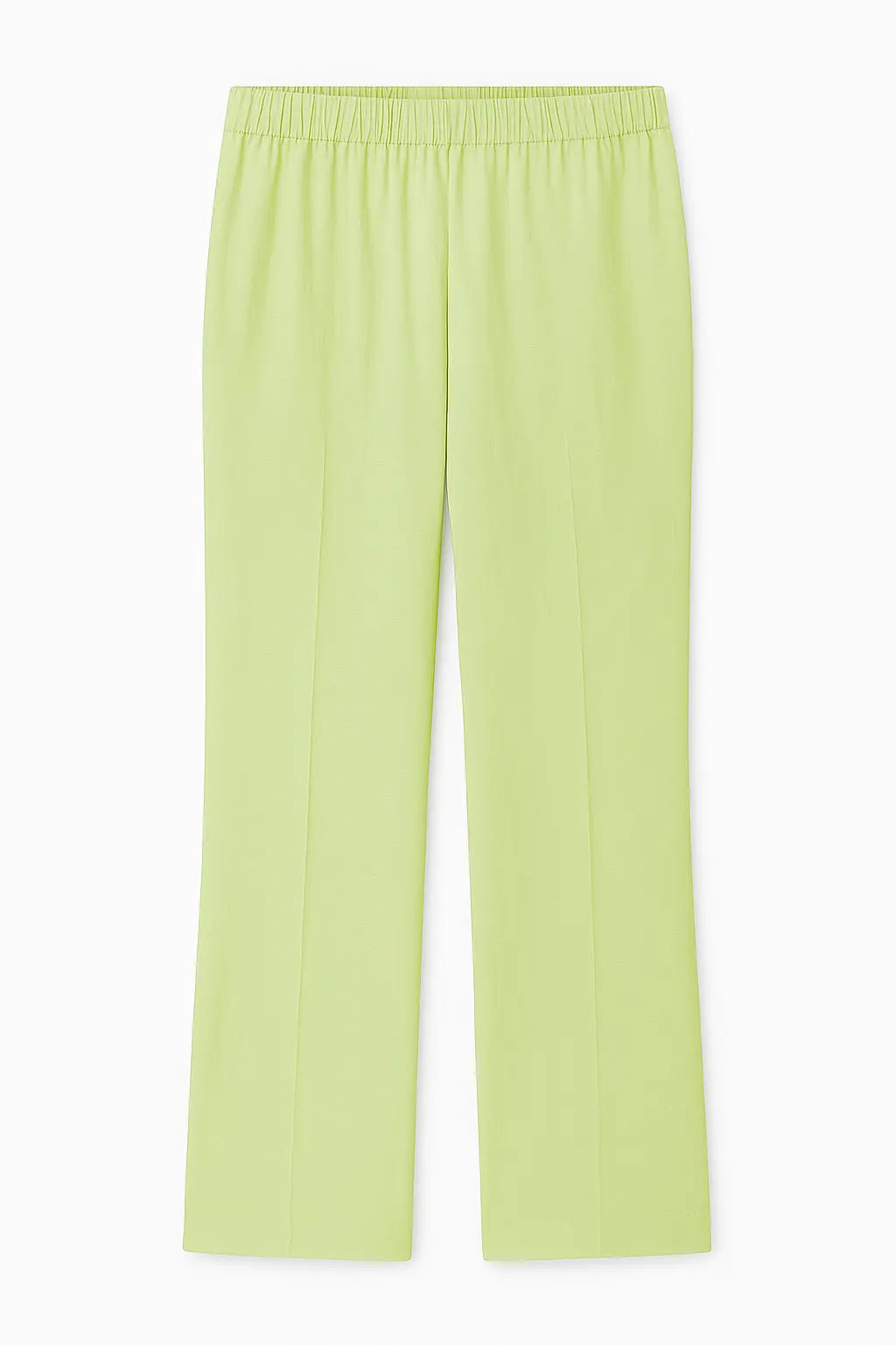 Pantalone ampi con vita elastica. In morbida viscosa, perfetto con tacchi o sandali per un look elegante o casual. Comodo e versatile per ogni occasione.