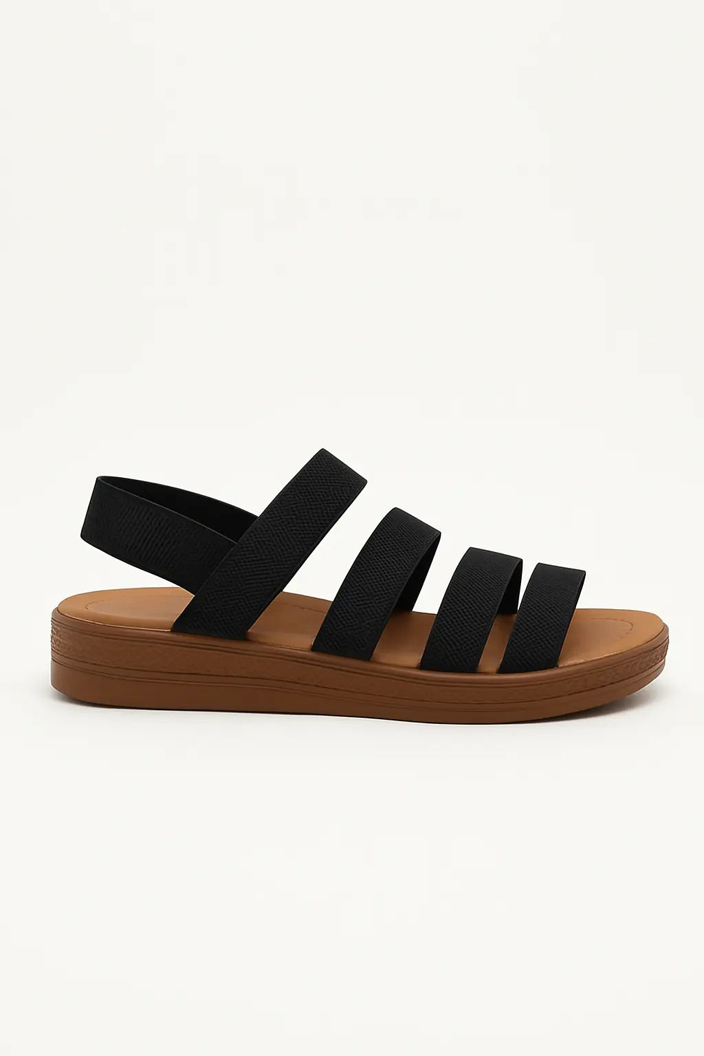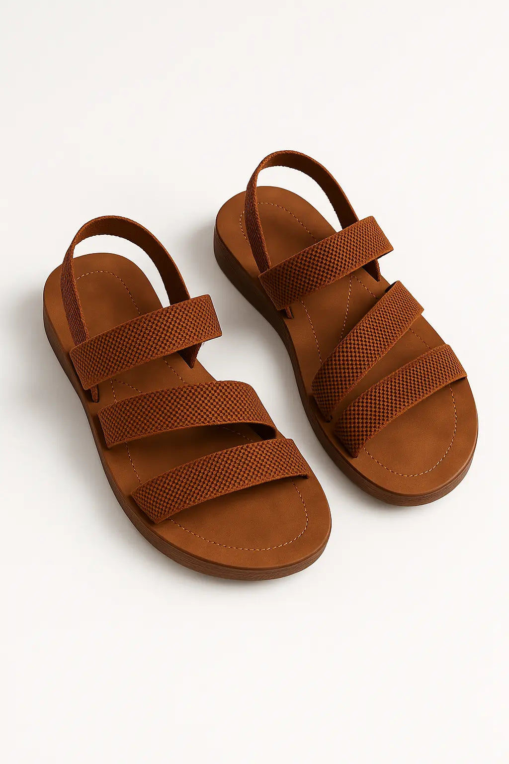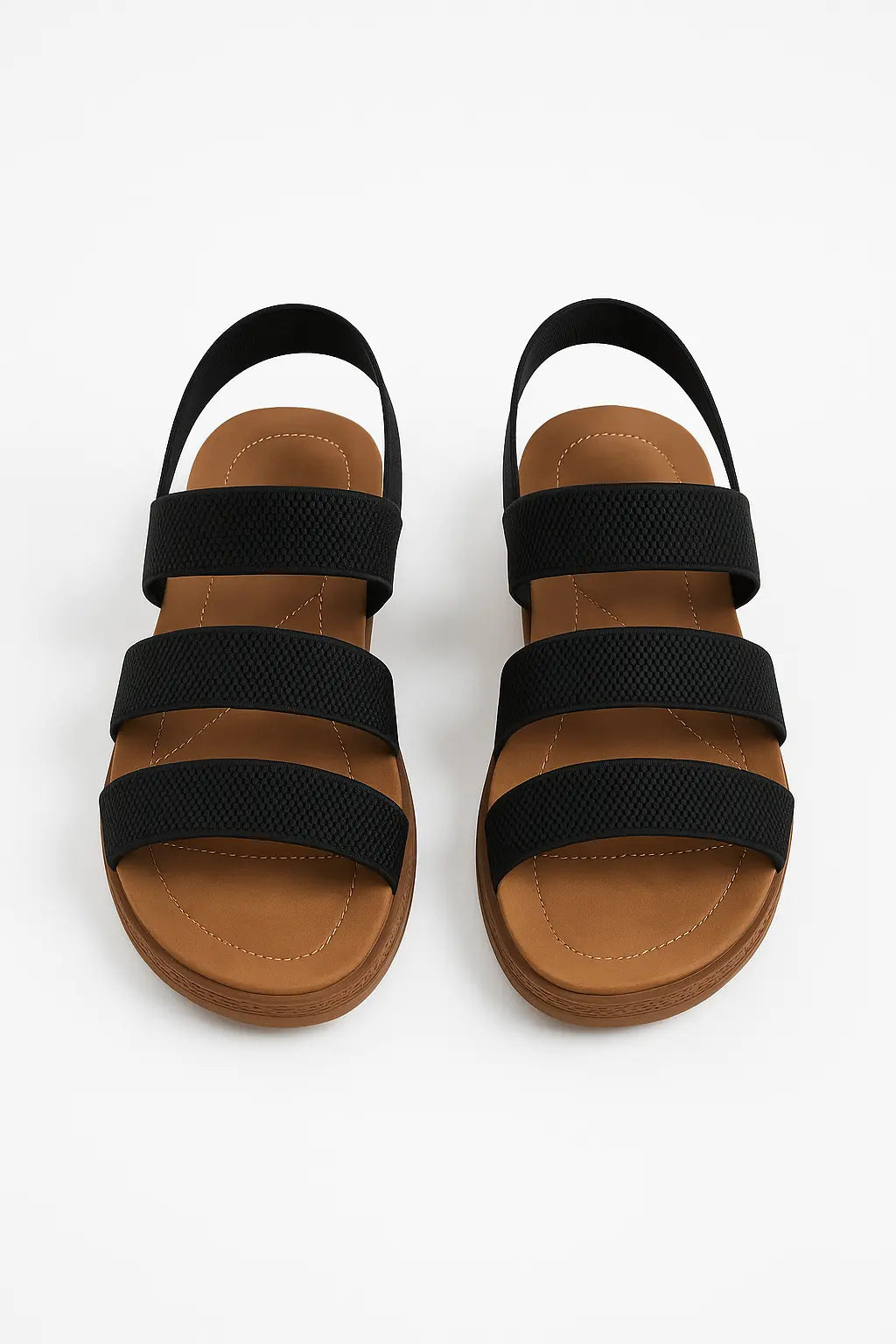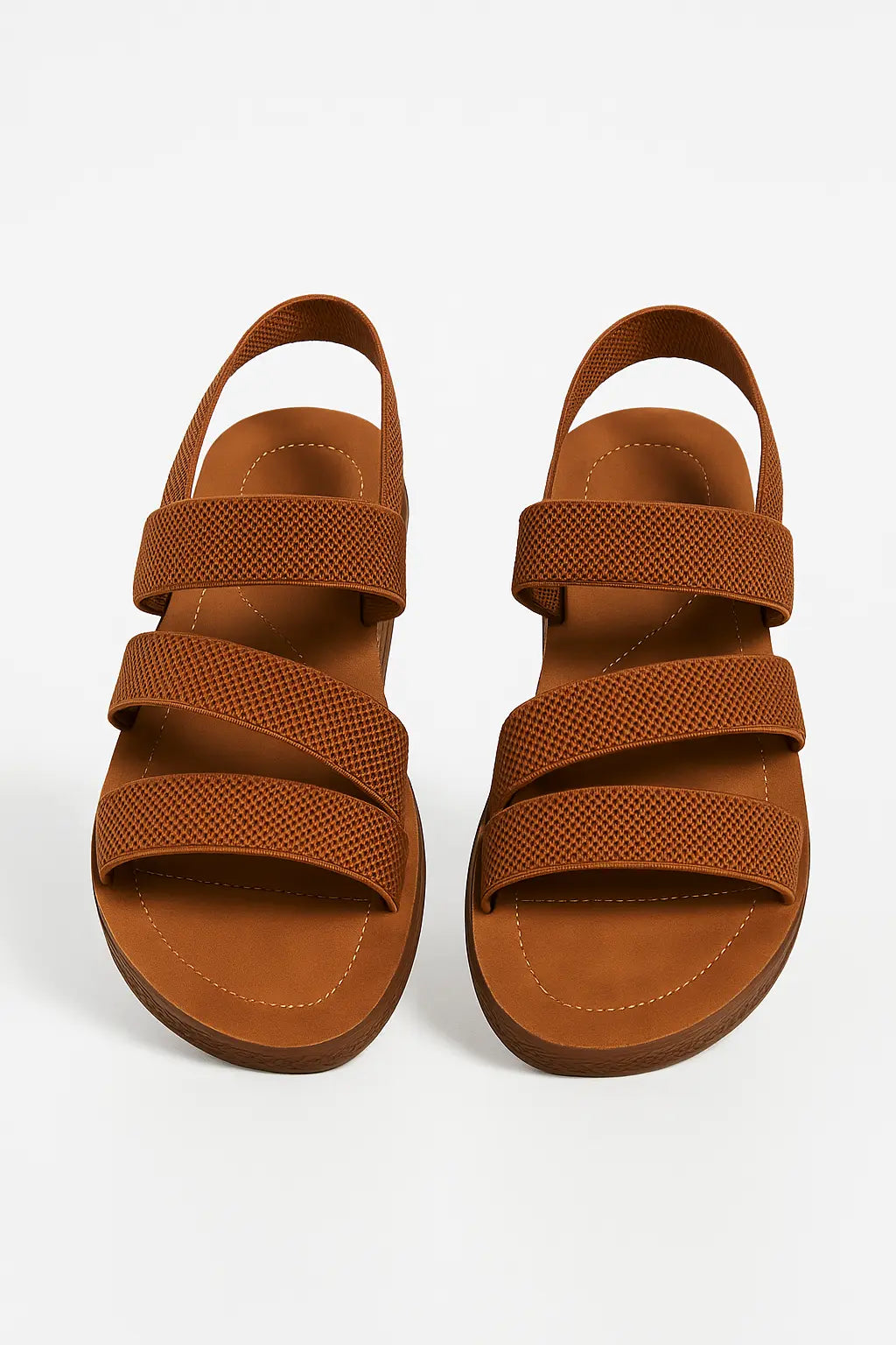 Versatili e ultraleggeri, questi sandali flat con fasce elastiche bianche sono perfetti per accompagnarti nelle giornate estive all’insegna del comfort e dello stile. Il design a tre fasce incrociate avvolge il piede in modo stabile, mentre il cinturino posteriore garantisce una calzata sicura. La suola in effetto cuoio aggiunge un tocco naturale e sofisticato, ideale per look casual e vacanzieri.