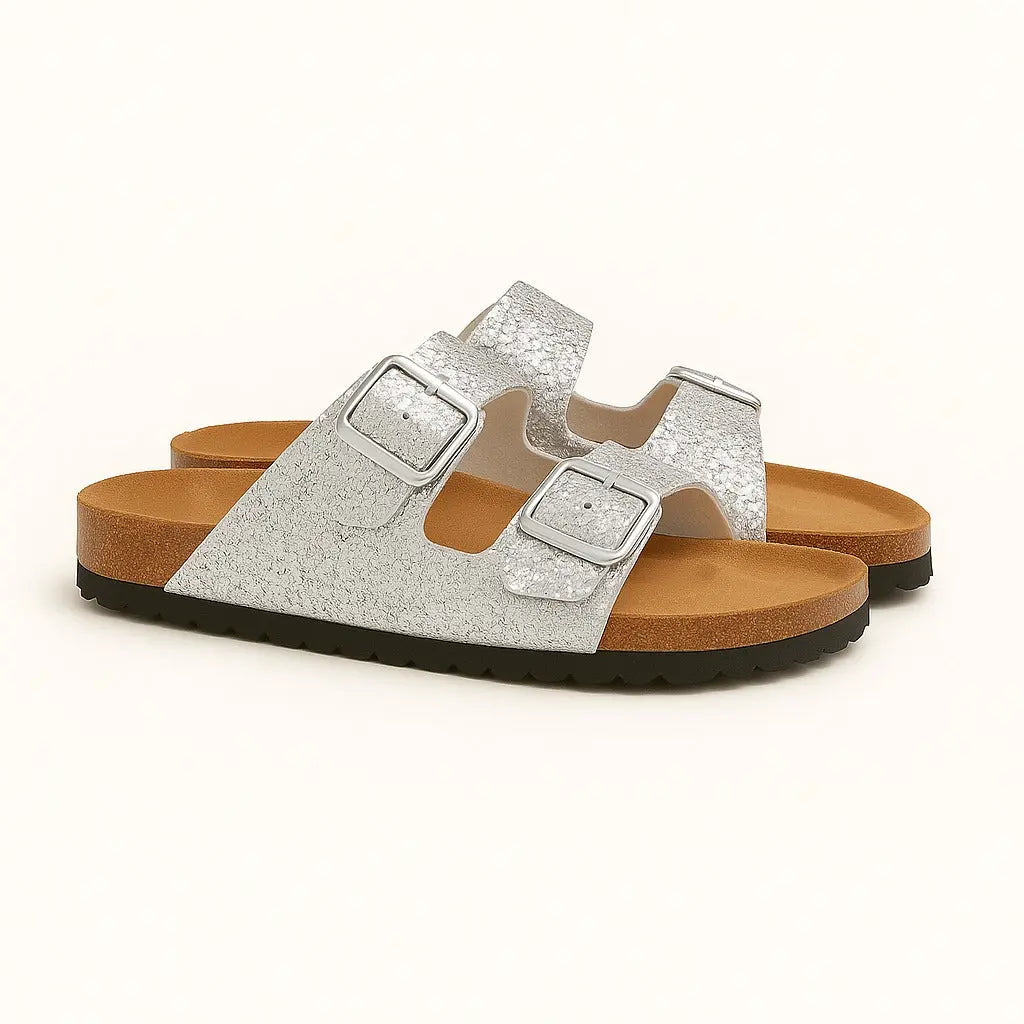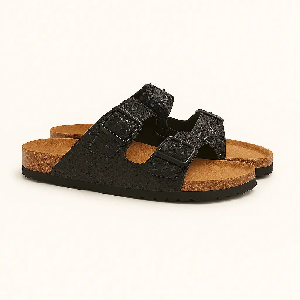 Sandalo glitterato con doppia fibbia