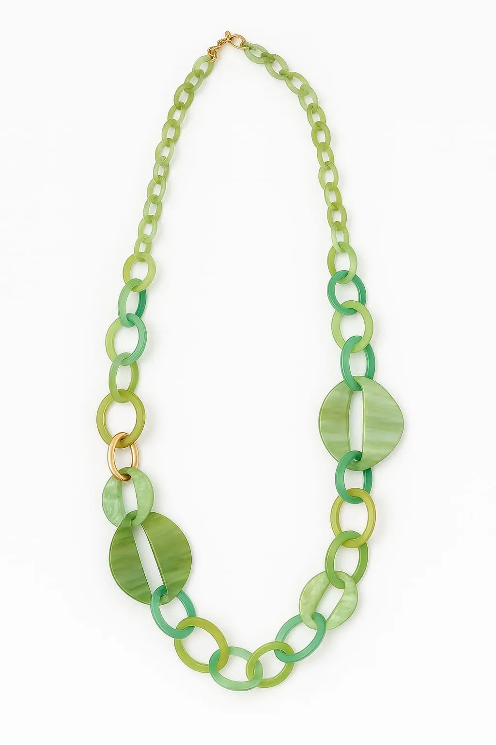 Questa collana lunga è perfetta per un look chic e di tendenza grazie ai suoi anelli colorati in varie grandezze e sfumature. Indossala in versione color block per un tocco più elegante o in modo più casual.