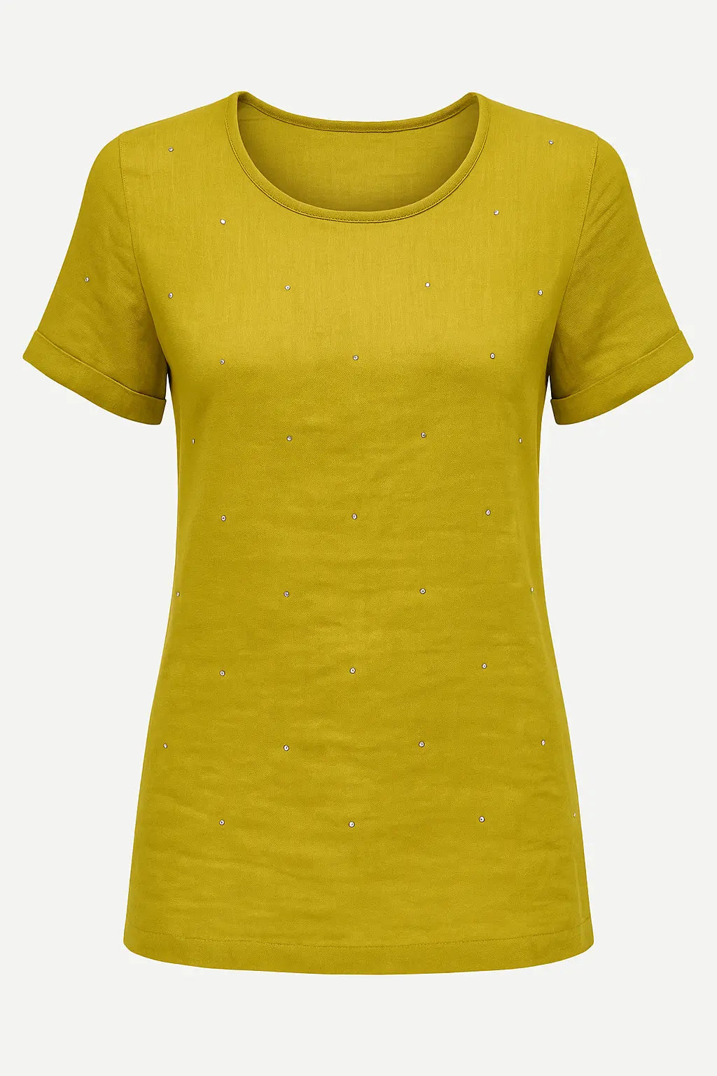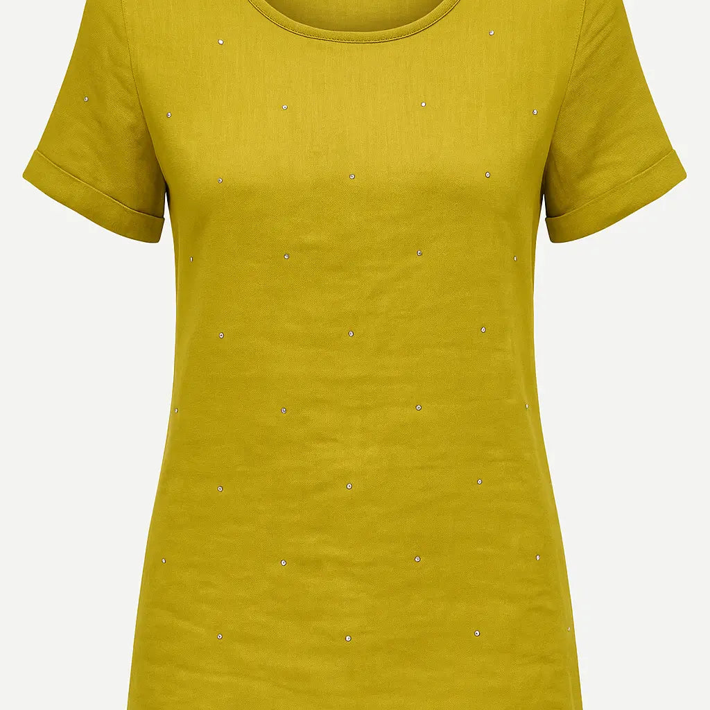 Eleva il tuo stile estivo con questa maglia in 100% lino con strass frontali. Perfetta per i giorni in vacanza o in città, offre un tocco di tendenza al tuo outfit. Con questa maglia di alta qualità, sarai sempre alla moda e sofisticata.