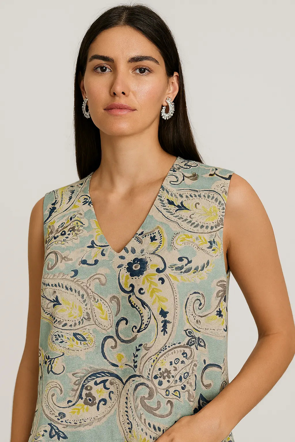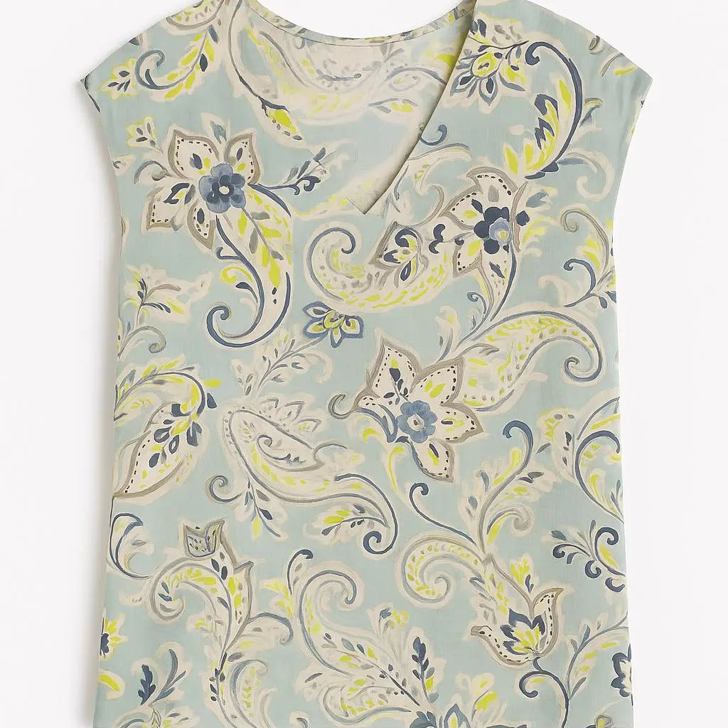 Top con scollo a V in fantasia paisley