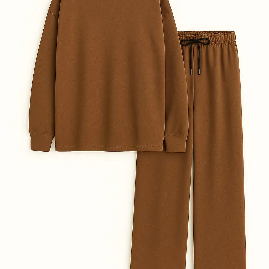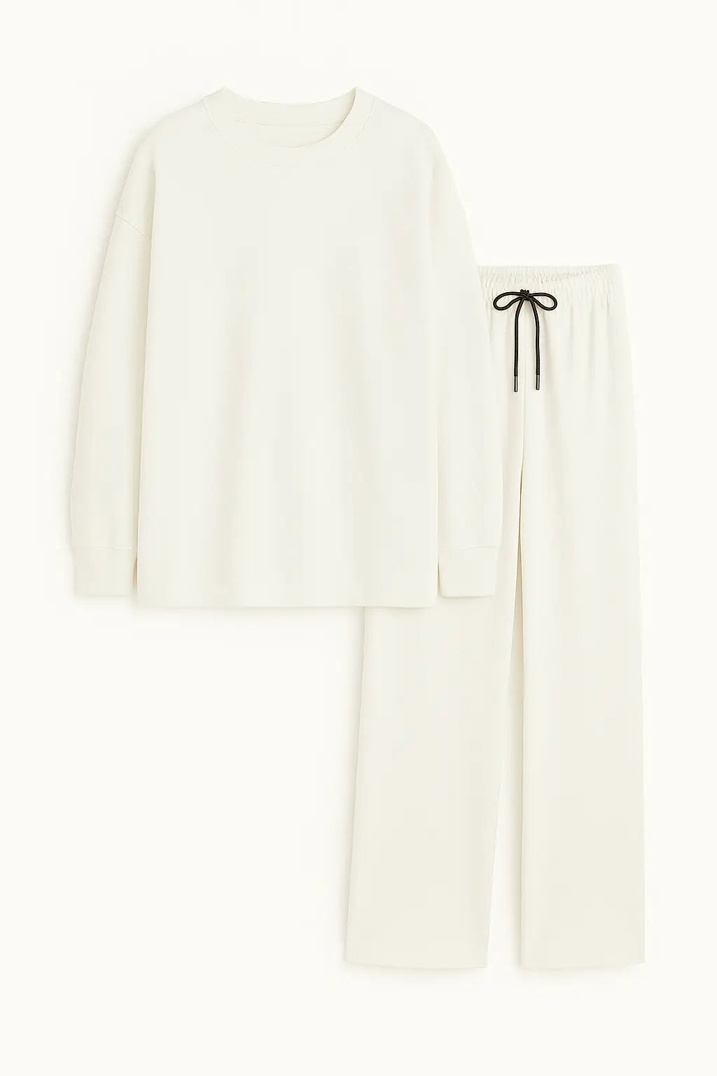 Questo tracksuit è il completo perfetto per chi ama uno stile easy ma chic. La felpa è oversize, mentre il jogger a palazzo è dotato di bustino elastico con lacci : la combinazione ideale per un look minimal di tendenza. Confortevole e alla moda, è il must-have per ogni occasione.