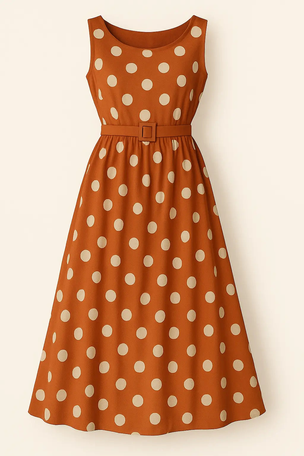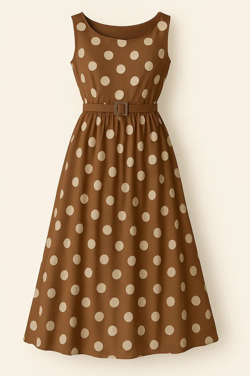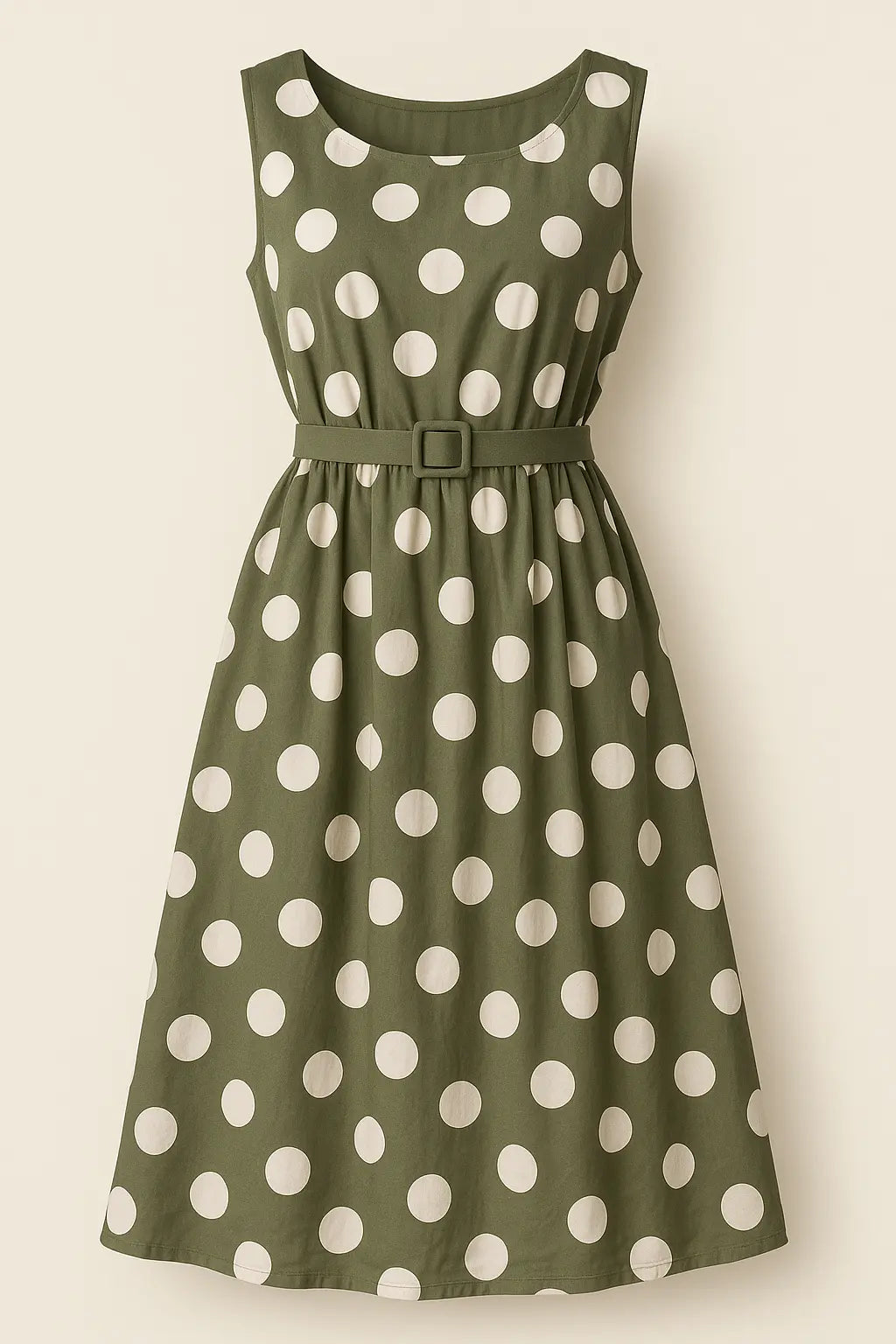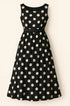 Rivivi il fascino retrò con questo elegante abito lungo a pois. Il motivo a maxi pois bianchi su base nera dona carattere e raffinatezza, mentre il taglio fluido e la cintura abbinata in vita esaltano la silhouette con naturalezza. Perfetto da indossare sia con sandali bassi per un look quotidiano, sia con tacchi per un’occasione speciale.