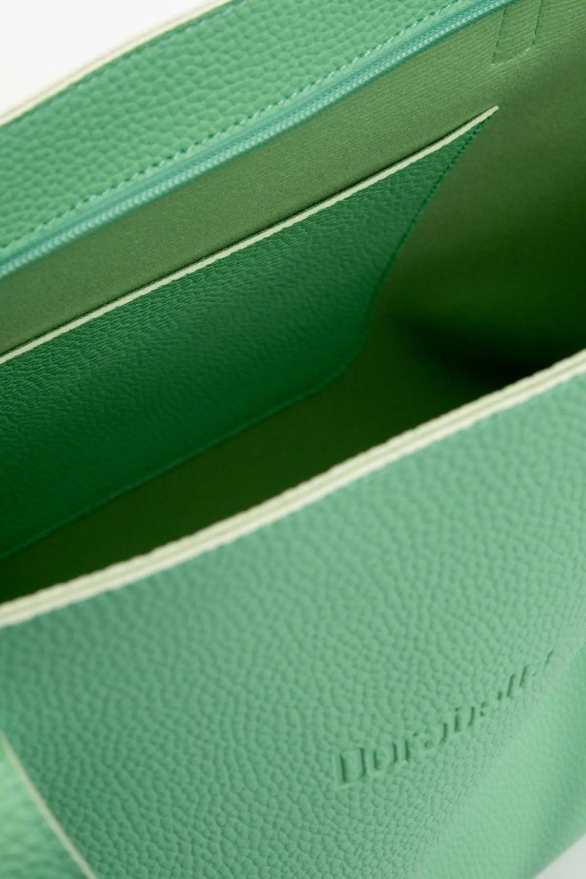 Borsa shopper large in ecopelle a grana con logo sul davanti MENTA
