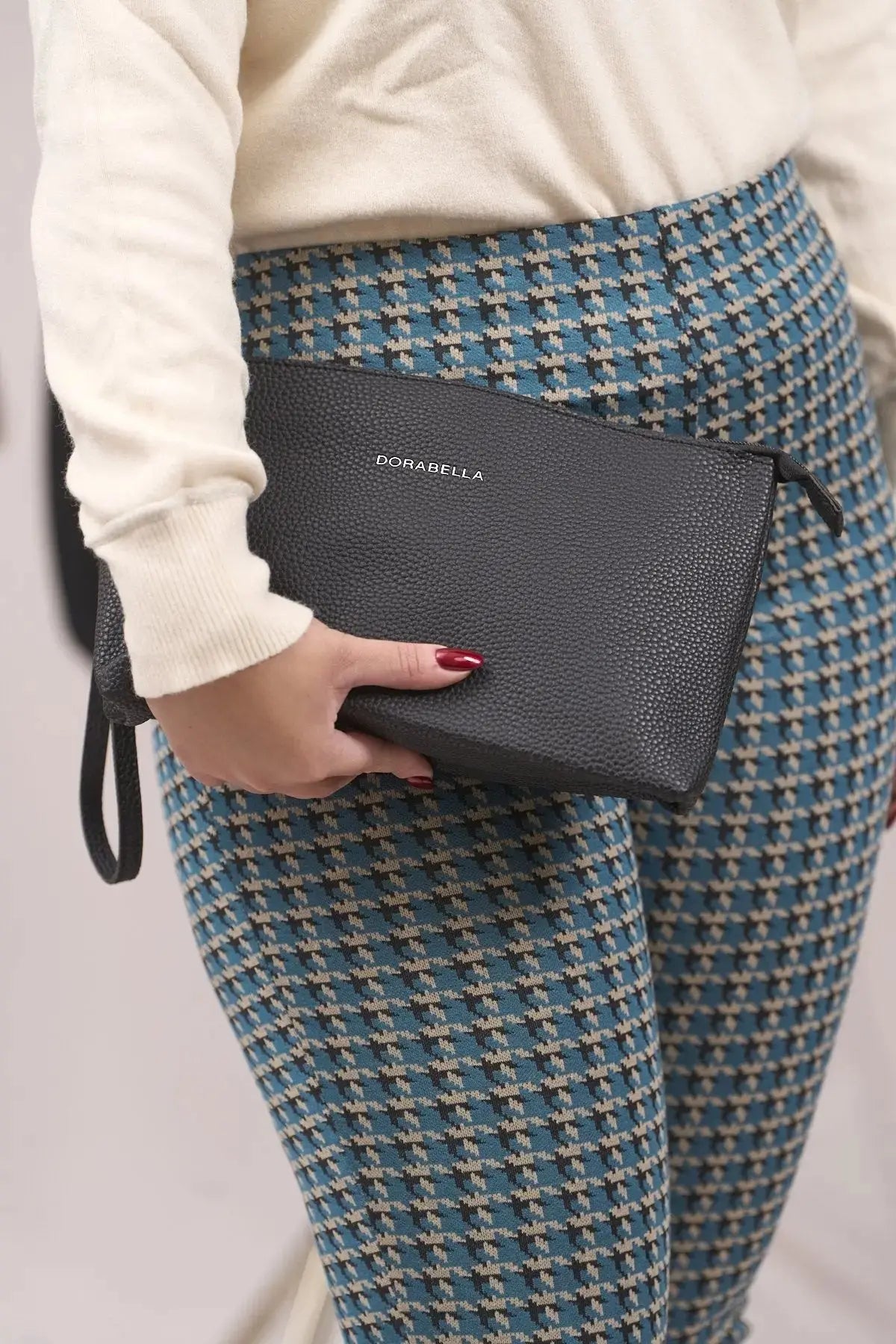 Clutch in ecopelle a grana con logo sul davanti e cinturino da polso NERO