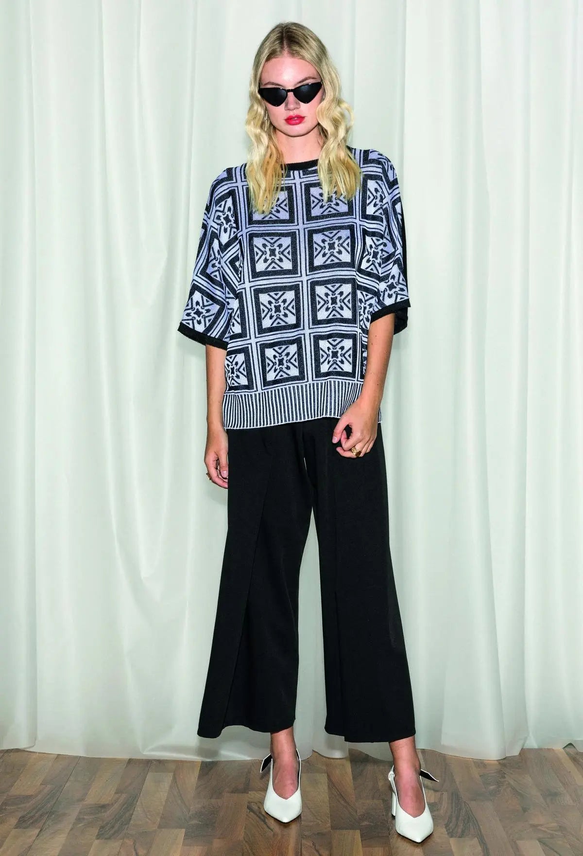 Maglia con fantasia e scollo a barca NERO-PANNA