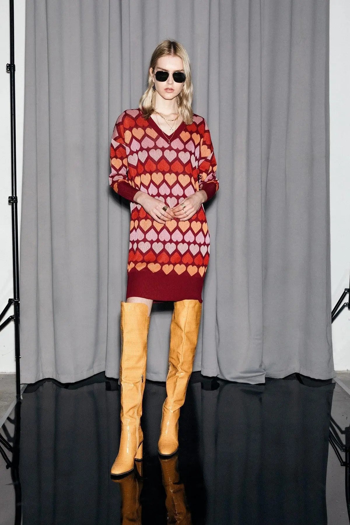 Maglia maxi fantasia cuori BORDEAUX