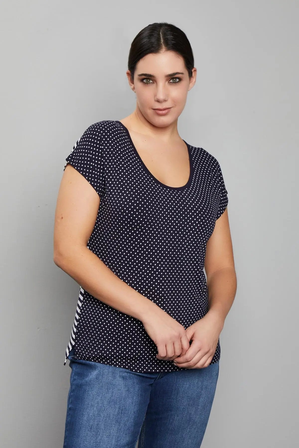 Maglia in viscosa fantasia pois/righe BLU-NAVY