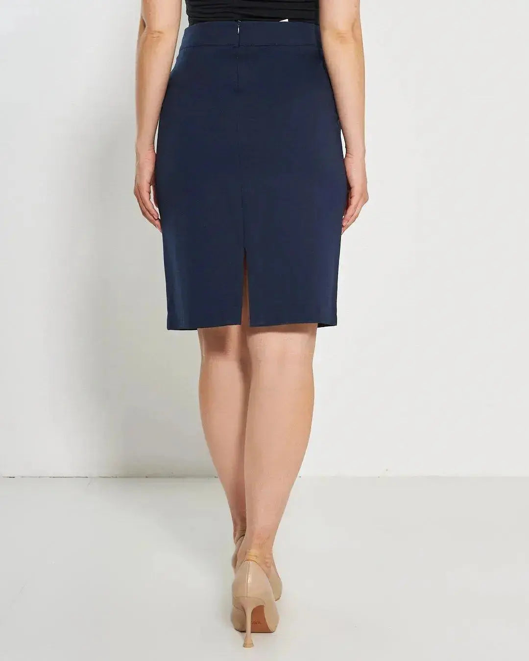 Eleganza versatile e mai scontata è l'appeal di questa gonna a tubino realizzata in punto milano stretch. La vita elastica è pensata per una vestibilità smart.